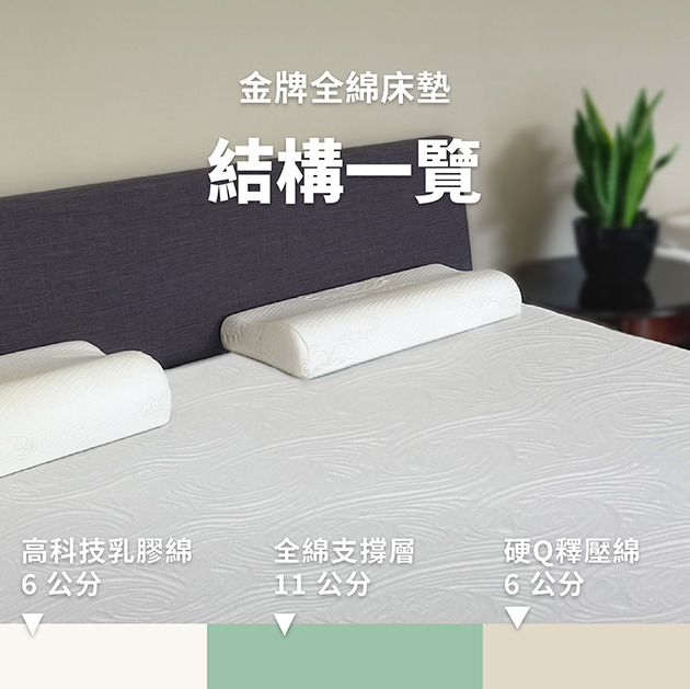 - 材質:天絲、高科技乳膠綿、全綿支撐綿、硬Q釋壓綿