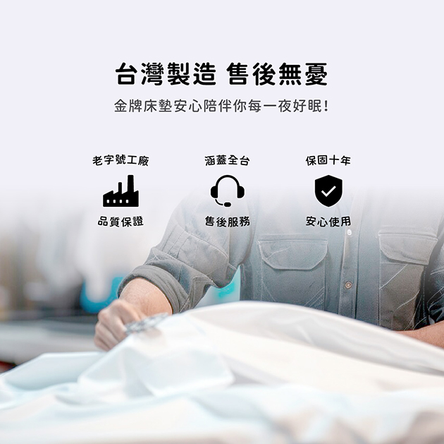 • 台灣職人手工製造,五星級工序製成,給你最全方位的睡眠品質呵護