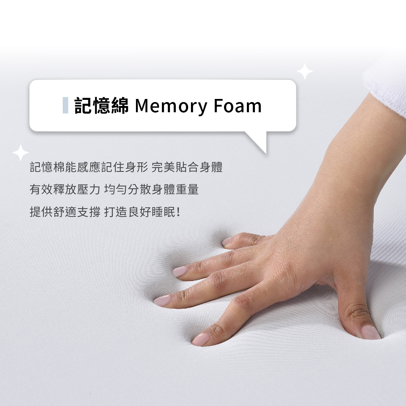 - 棉體:4公分記憶綿、3公分高彈力支撐綿