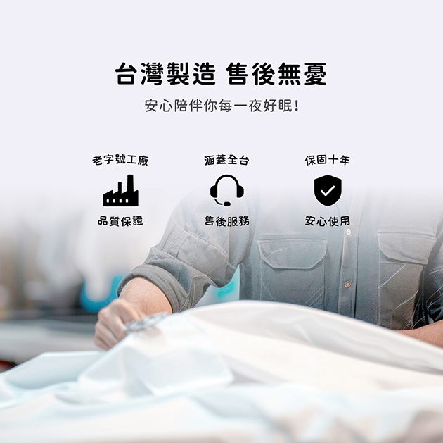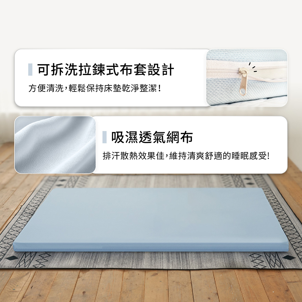 - 可放在舊式硬彈簧床上,提升睡眠舒適度,改善躺下感受,並且跟翻身干擾說再見!