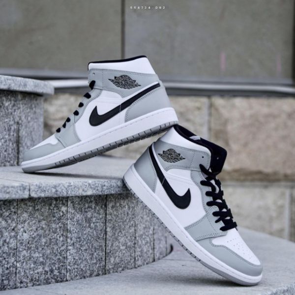 NIKE AIR JORDAN 1 MID SMOKE GREY 煙灰 黑勾 白灰小DIOR 中筒 AJ1 休閒鞋【554724-092】