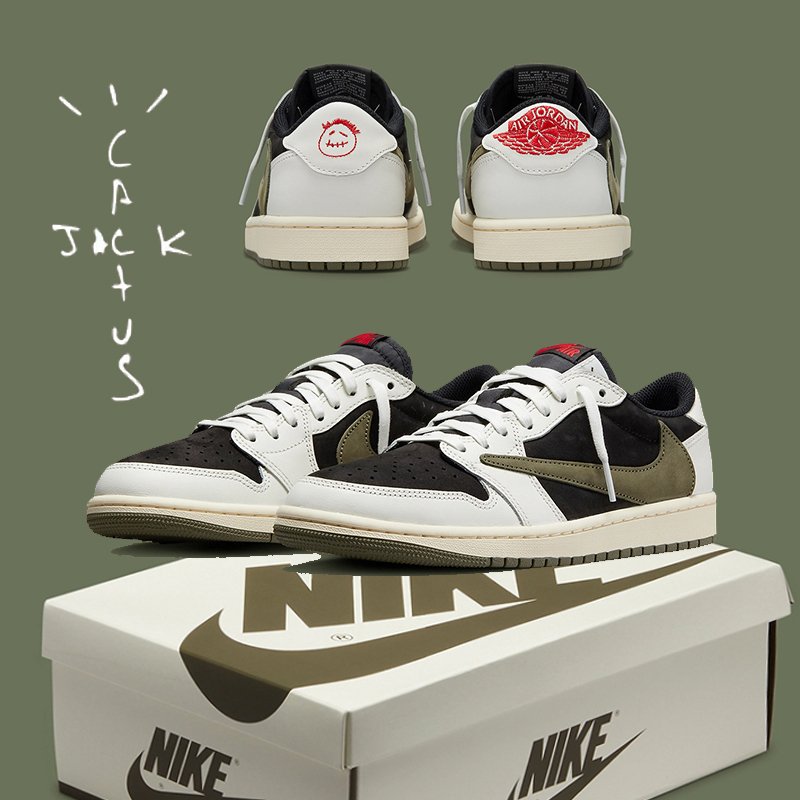 TRAVIS SCOTT x AIR JORDAN 1 OG OLIVE 黑綠 倒鉤 5.0 低筒休閒鞋 ( DZ4137-106)