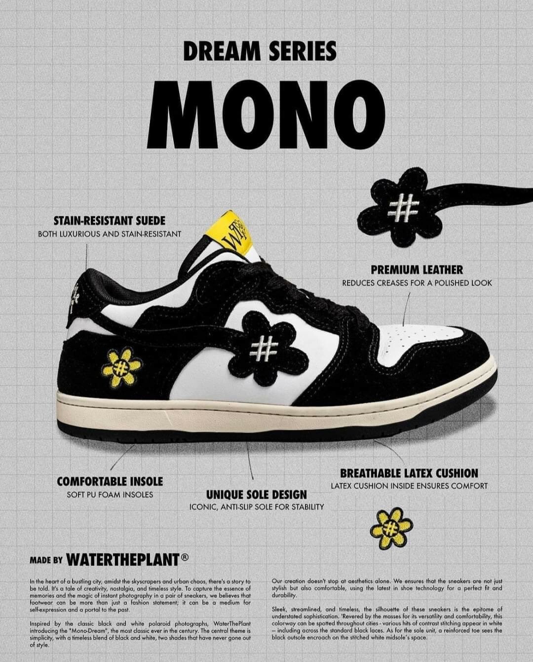 WATER THE PLANT WTP 經典黑白 熊貓 MONO 刺繡小花鞋
