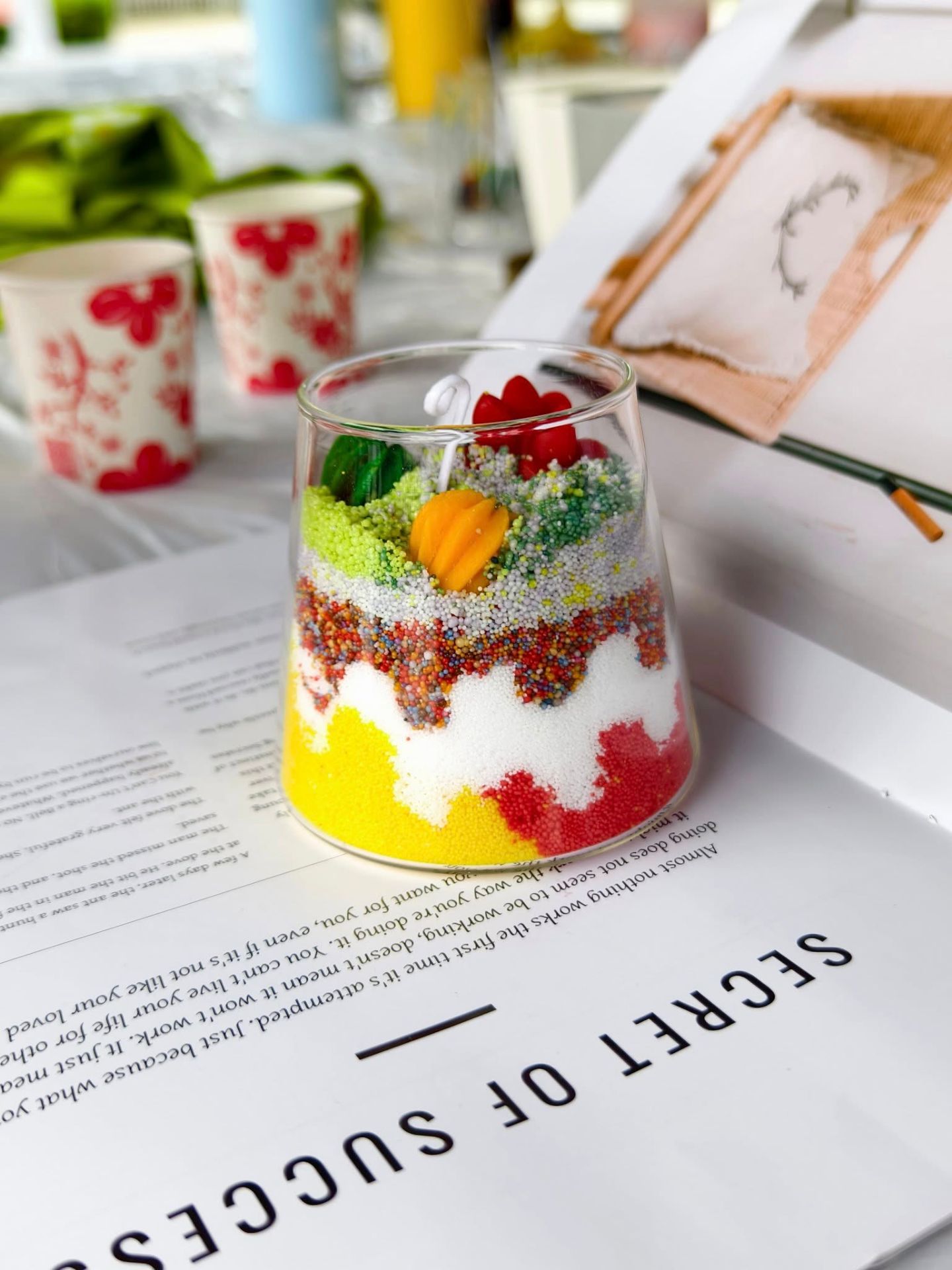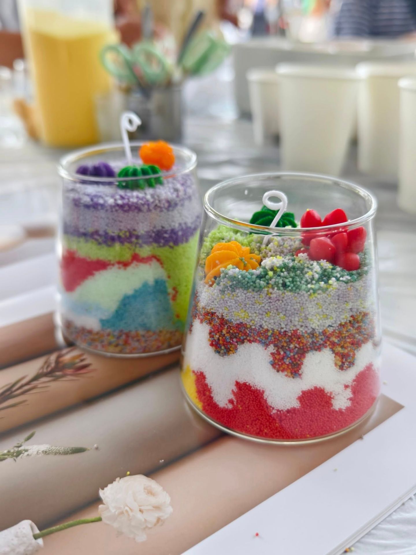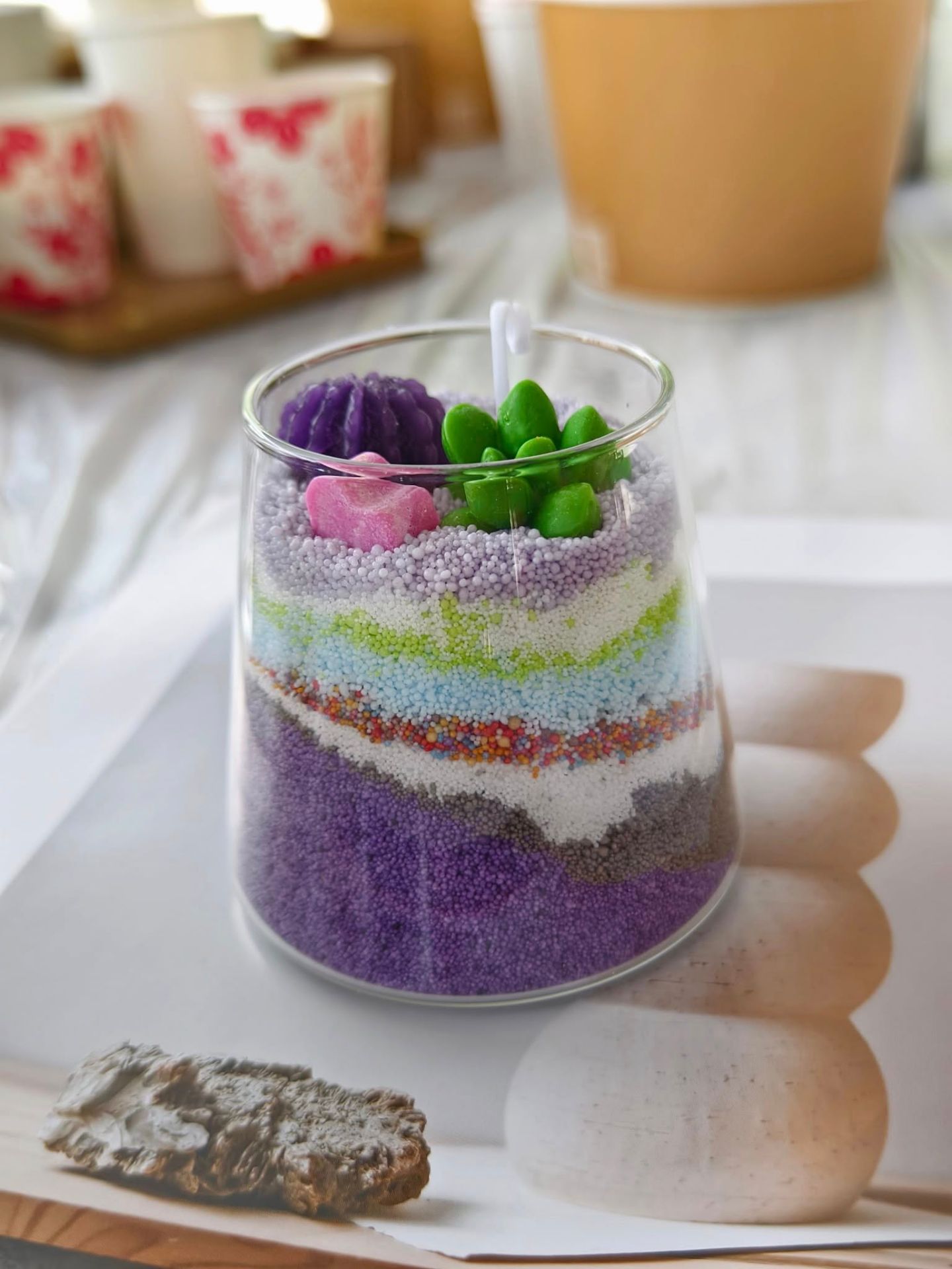 創意滿滿自由調味調色做造型 好看好玩又可以簡單安全上手 透過沙畫層層疊疊技法製作造型 是一款超級療癒且有趣的手作 整顆都是可以燃燒的蠟燭唷 一起來享受香氛時光呦~