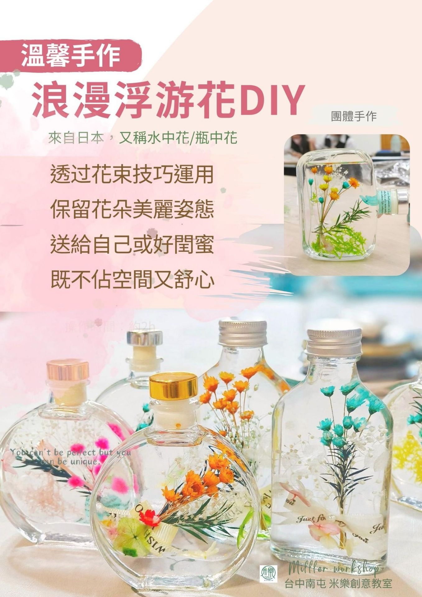 將姿態優雅的永生花,透過巧思設計封存在晶透瓶中,化作宛若漂浮的夢幻景致。這款「水中花」不僅療癒唯美,更能展現獨一無二的浪漫小宇宙。課程中能盡情享受手作樂趣,完成的作品既適合居家擺設,也能成為充滿心意的禮物。兩小時的專屬時光,帶回幸福與美好回憶。