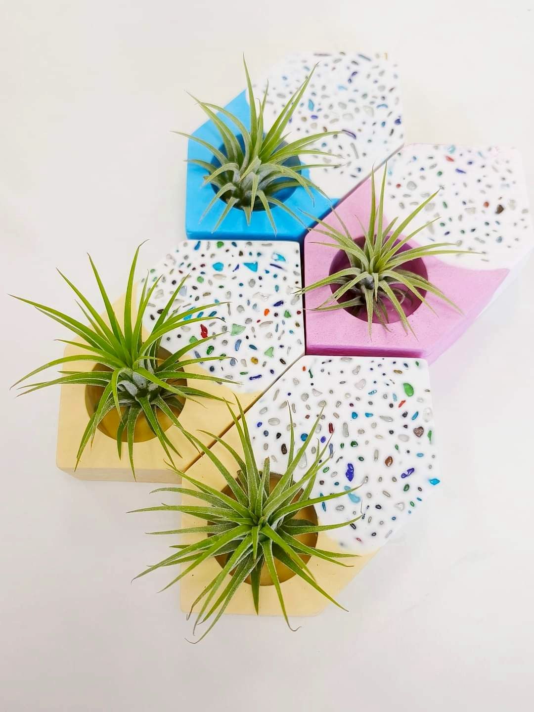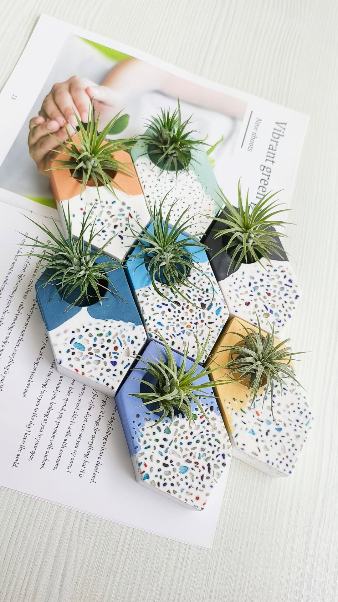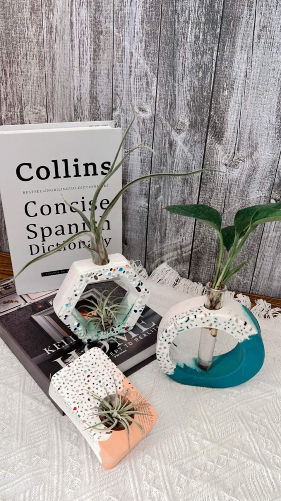 象徵金、木、水、火、土能量的五彩石,巧妙結合石膏,製作出獨一無二的擴香石,不僅能具有淨化空間能量。另外再搭配綠植栽,讓作品兼具療癒、美觀與實用性。從中體驗專注的樂趣,培養美感與創意。