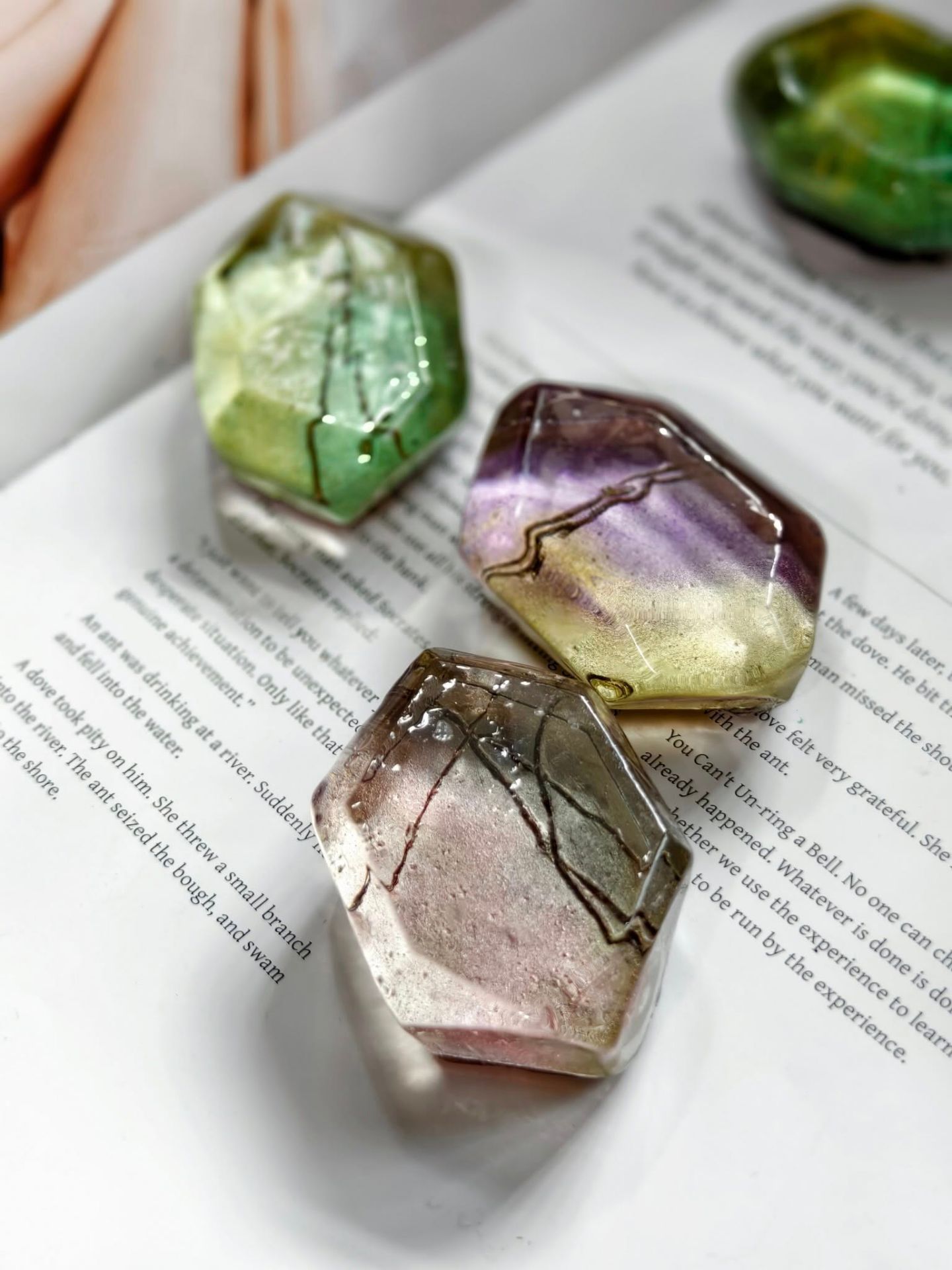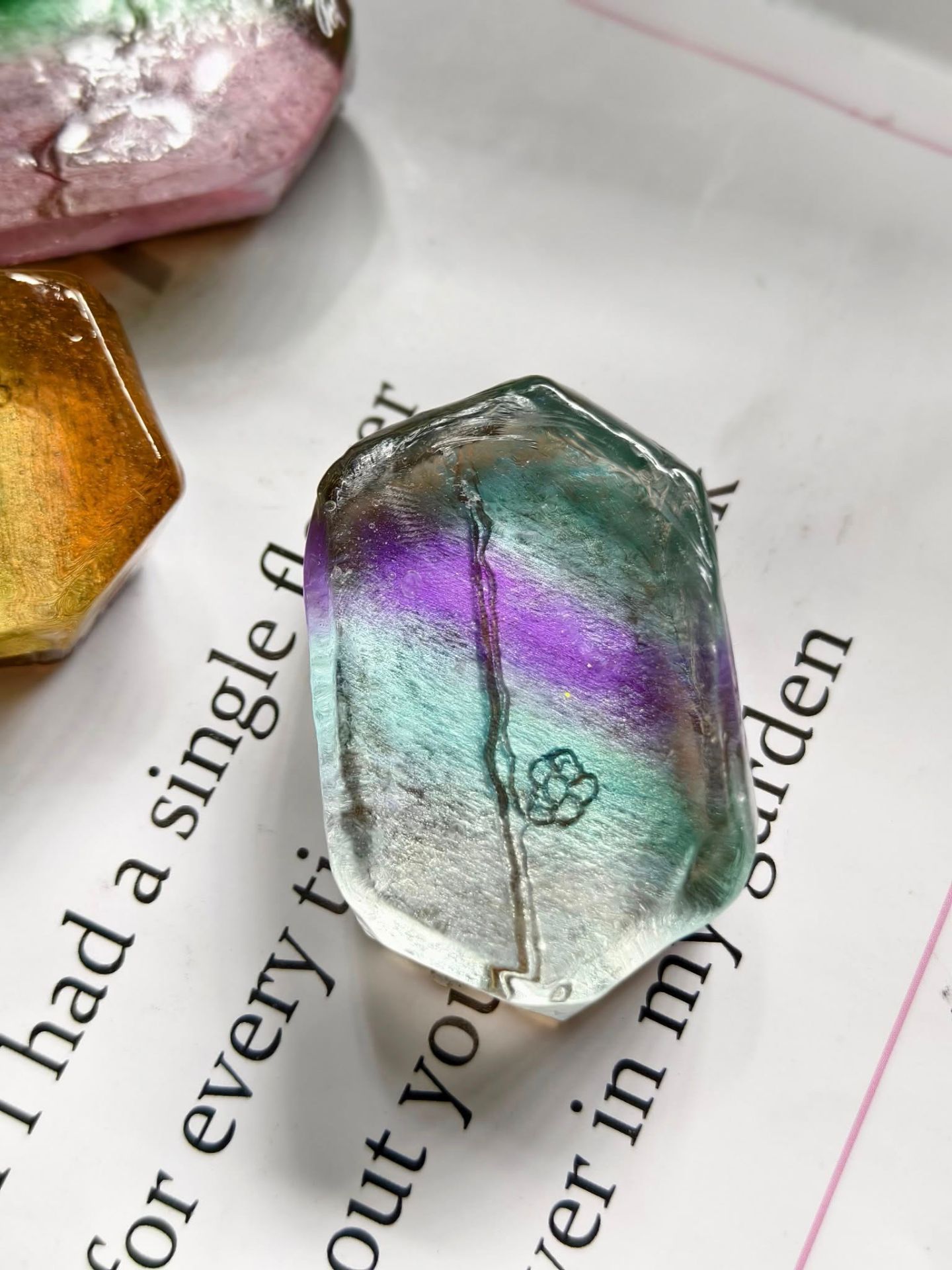 結合線條、色彩與造型之美的療癒手作!透過獨特的拉色技巧,呈現如寶石般的光影層次,創造專屬於你的晶瑩皂藝。每一塊作品都獨一無二,閃耀自然與創意的美感。