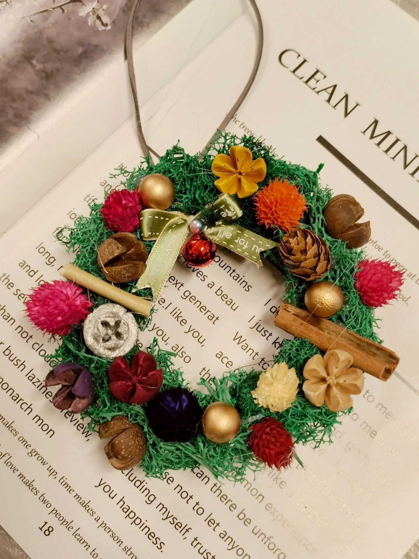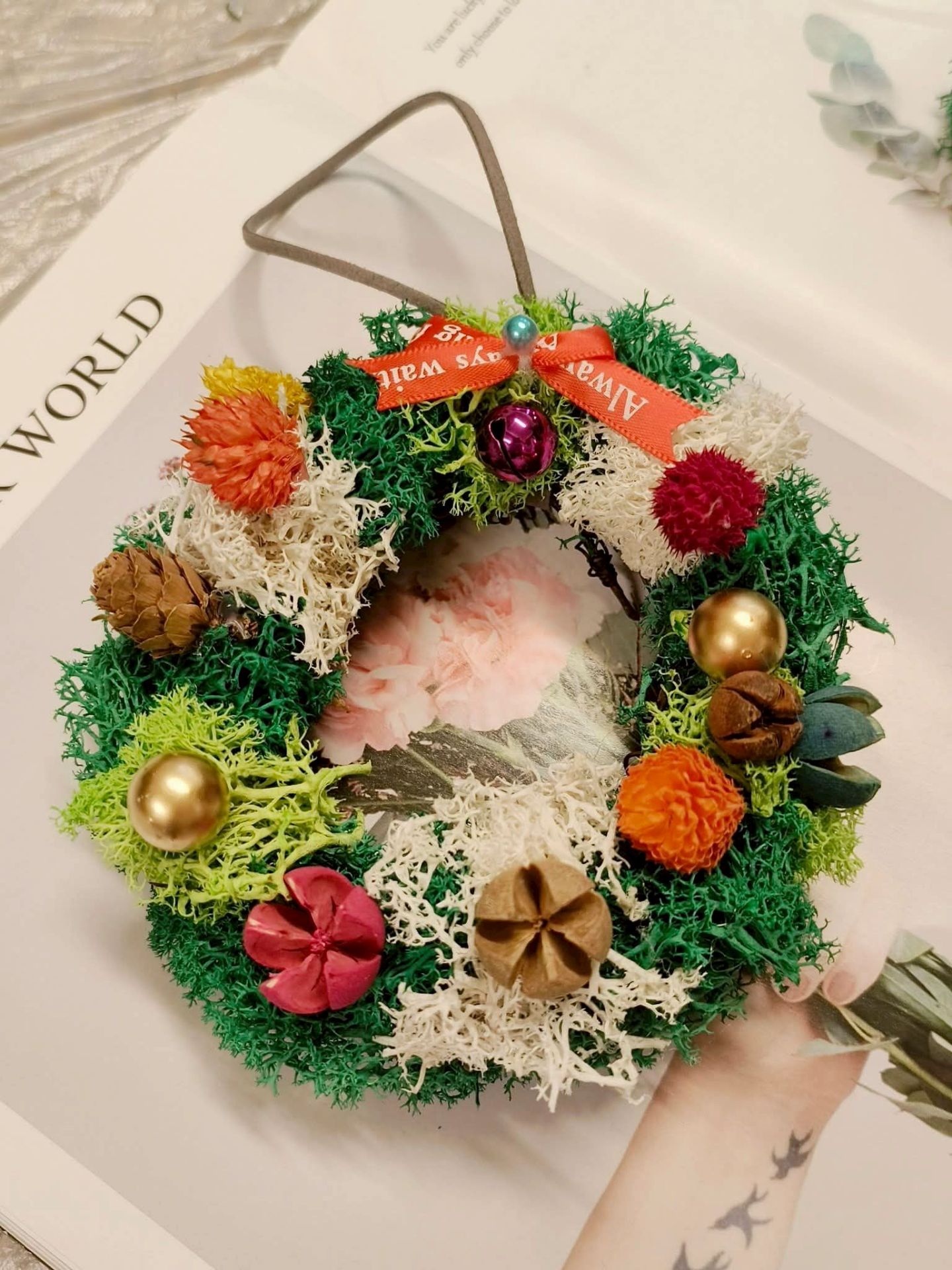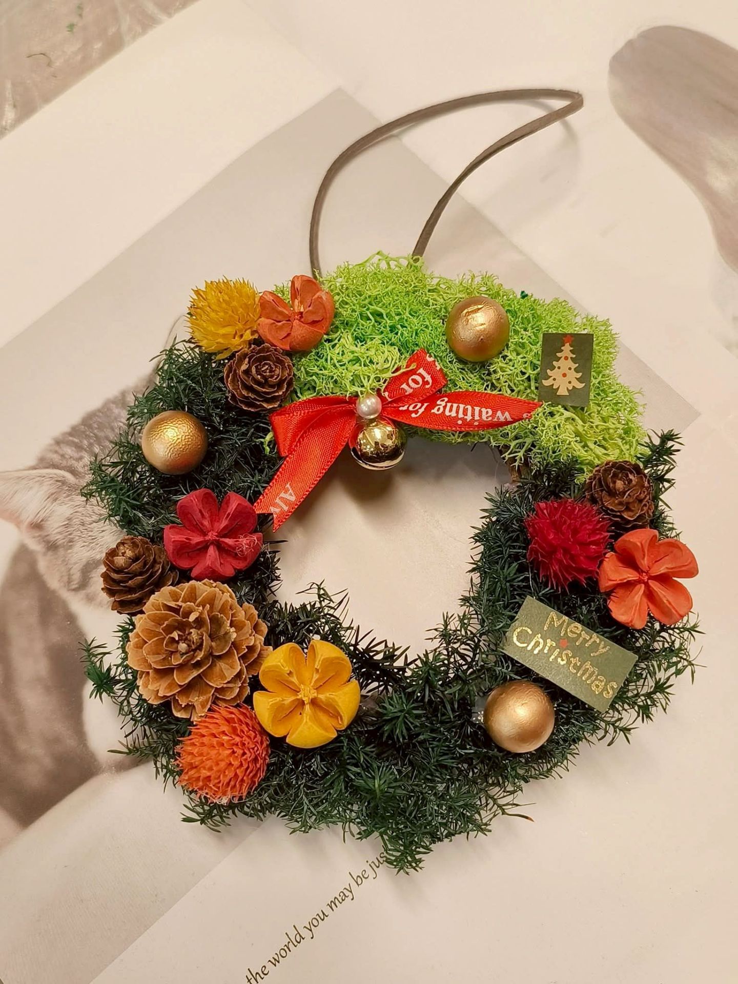 迎接溫馨聖誕節,一起親手製作屬於自己的節慶花圈吧!課程中將運用天然松果、乾燥花材與聖誕飾品,學習配色與構圖技巧,創造獨一無二的花圈作品。不論是居家佈置或送禮,都充滿心意與節日氛圍。一起感受手作的溫度,幸福豐收迎接新的一年。
