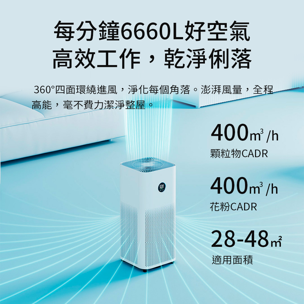 ◆ 商品保固半年 ◆ 米家空氣淨化器4 (平行輸入 )小坪數使用 房間 嬰兒房 適用面積 8.47~14.5坪( 28 ~ 48m² ) 🔸 連接米家App 設定地區請選中國大陸地區🔸 如不看數據 遠端操作 不連接也可以直接使用