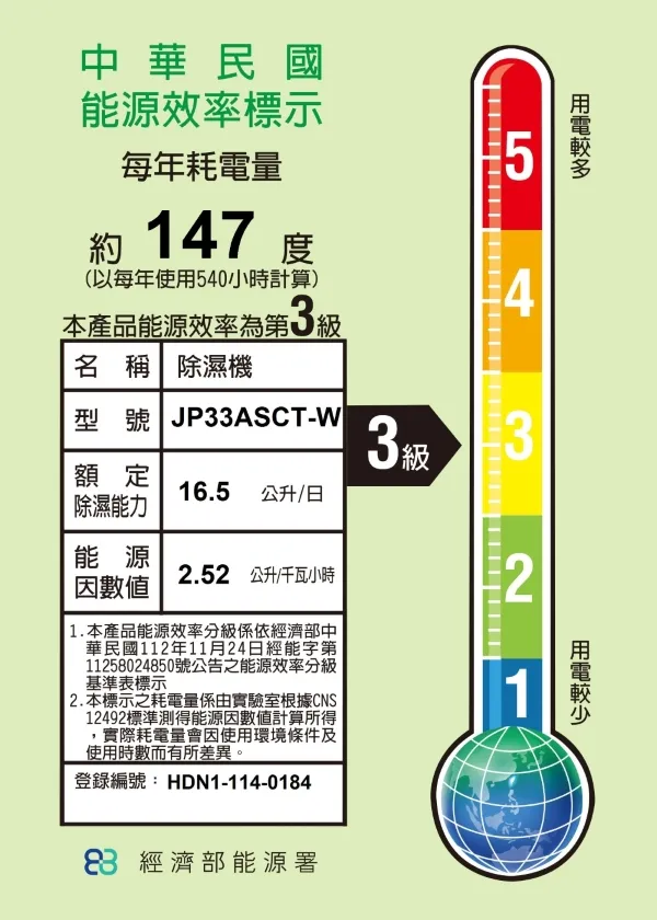 除溼能力:16.5L/日(27度 60%RH)/水箱4L
