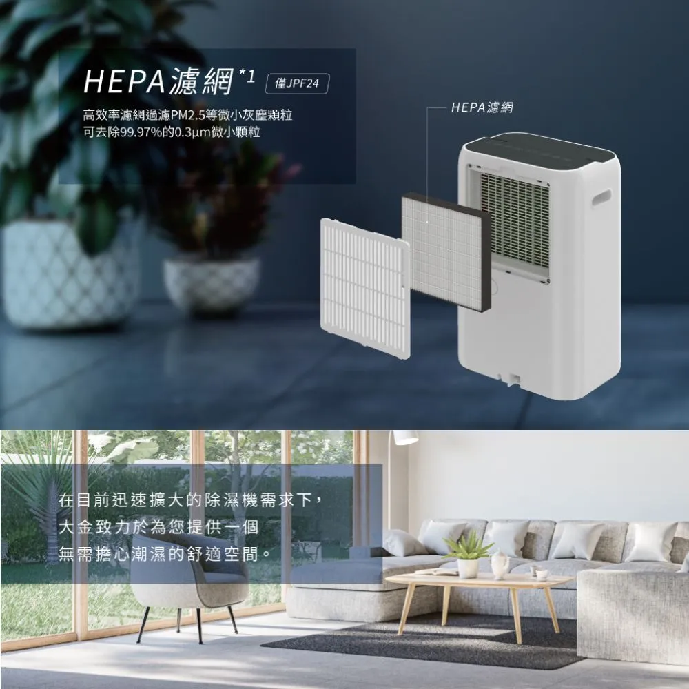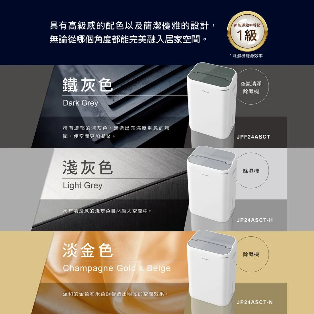 DAIKIN 大金12公升除濕機 一級能效 JP24ASCT-N 淡金色 高效率HEPA濾網 空氣品質監測 LED觸控操作面板