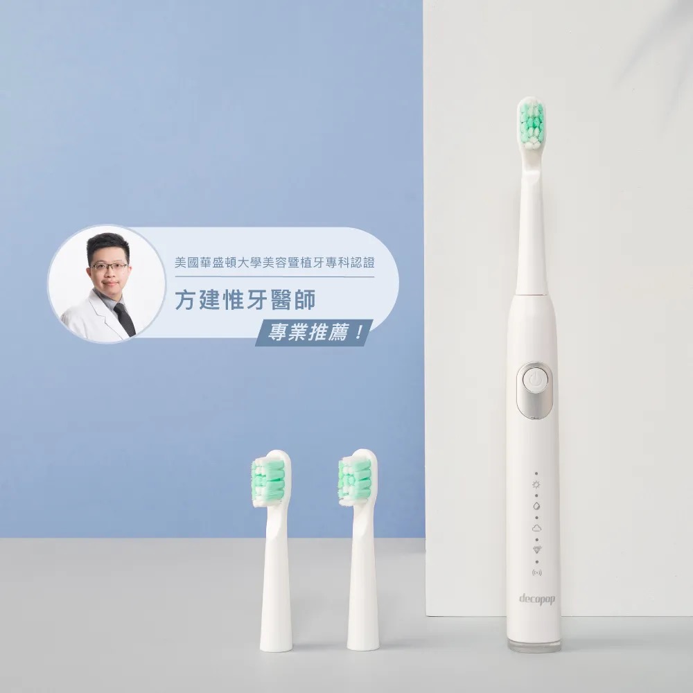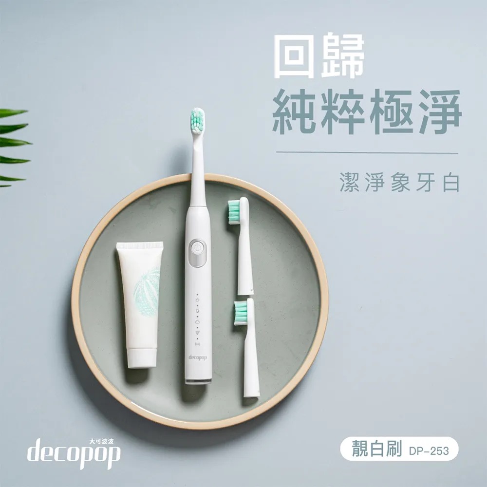 decopop 大可波波極淨鑽白音波電動牙刷 (DP-253) 40000次/分震動,深層清潔牙齒髒污 5種模式自由選擇 TypeC快速充電,180天高續航力