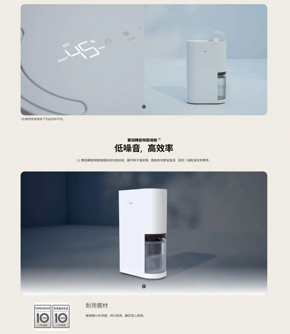 LG 樂金18公升 一級能效 PuriCare 雙變頻除濕機 DD181MWE0 2029/12/31前可申請貨物稅補助1200元 輕巧機身收納便利 奈米離子抑制細菌生長