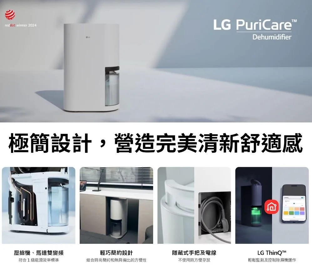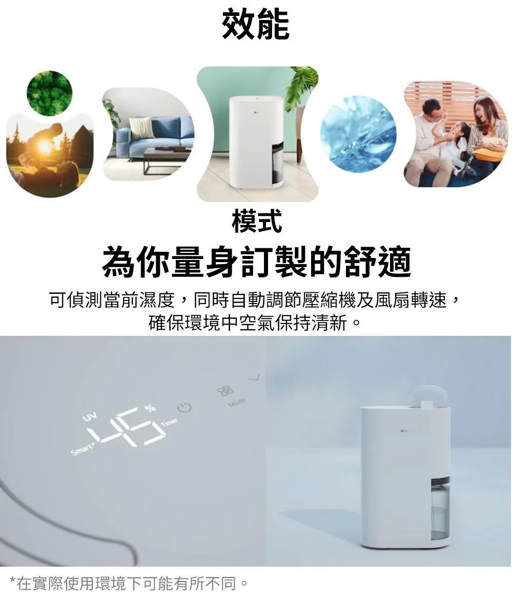 LG 樂金PuriCare 雙變頻除濕機 DD121MWE0 12公升 白 2029/12/31前政府節能家電再退稅 奈米離子抑制細菌病毒生長 30項安全裝置 | WiFi遠控功能