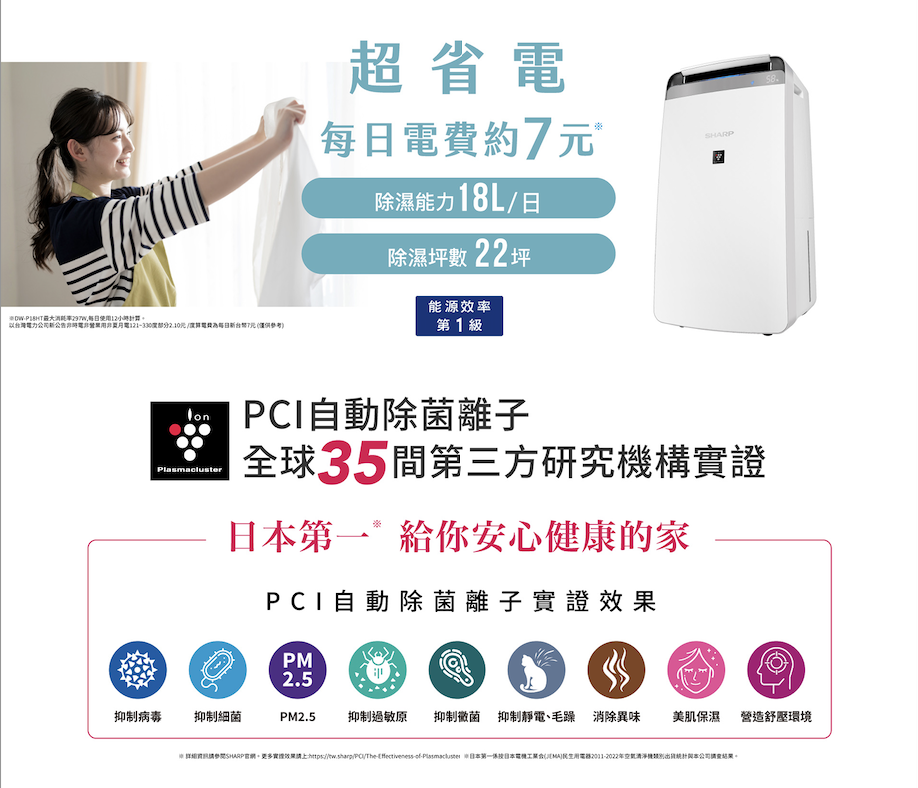 SHARP 夏普可退稅1200 18L 自動除菌離子除濕機 DW-P18HT-W 除濕能力18L/日 (室溫27 ℃/相對濕度60%) 三大自動感應偵測(溫度/濕度/亮度) 除濕/衣物乾燥+自動除菌離子除菌脫臭模式