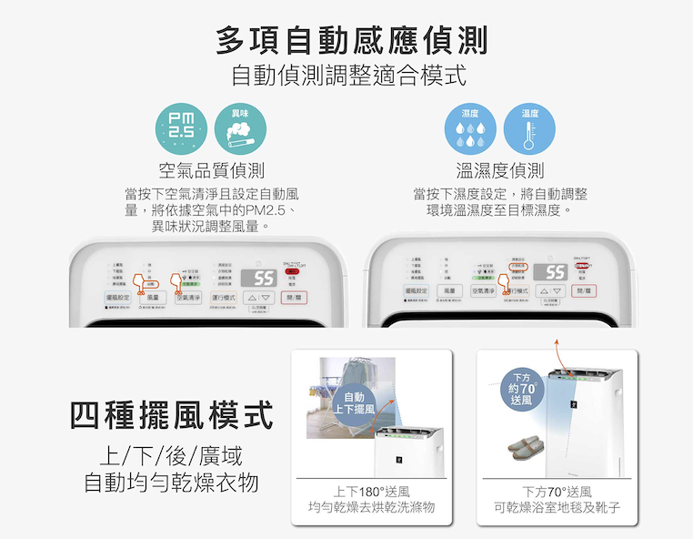 SHARP 夏普10公升 自動除菌離子2合1空氣清淨除濕機(DW-LT10FT-W) Plasmacluster自動除菌離子除菌脫臭/定點脫臭 搭載HEPA集塵濾網及活性碳脫臭濾網(使用壽命5年) 四輪萬向滑輪,移動輕鬆便