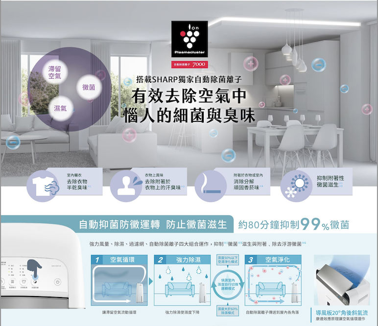 SHARP 夏普18公升自動除菌離子衣物乾燥抗黴除濕機 DW-K18HT-S 星耀銀 一級能效,可申請節能補助$1200 擺脫異味黴菌,抑制半乾臭味 全機三年保固,壓縮機五年保固