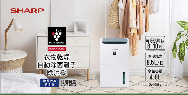 SHARP 夏普8.5公升 自動除菌離子衣物乾燥除濕機(DW-P9HT-W)
