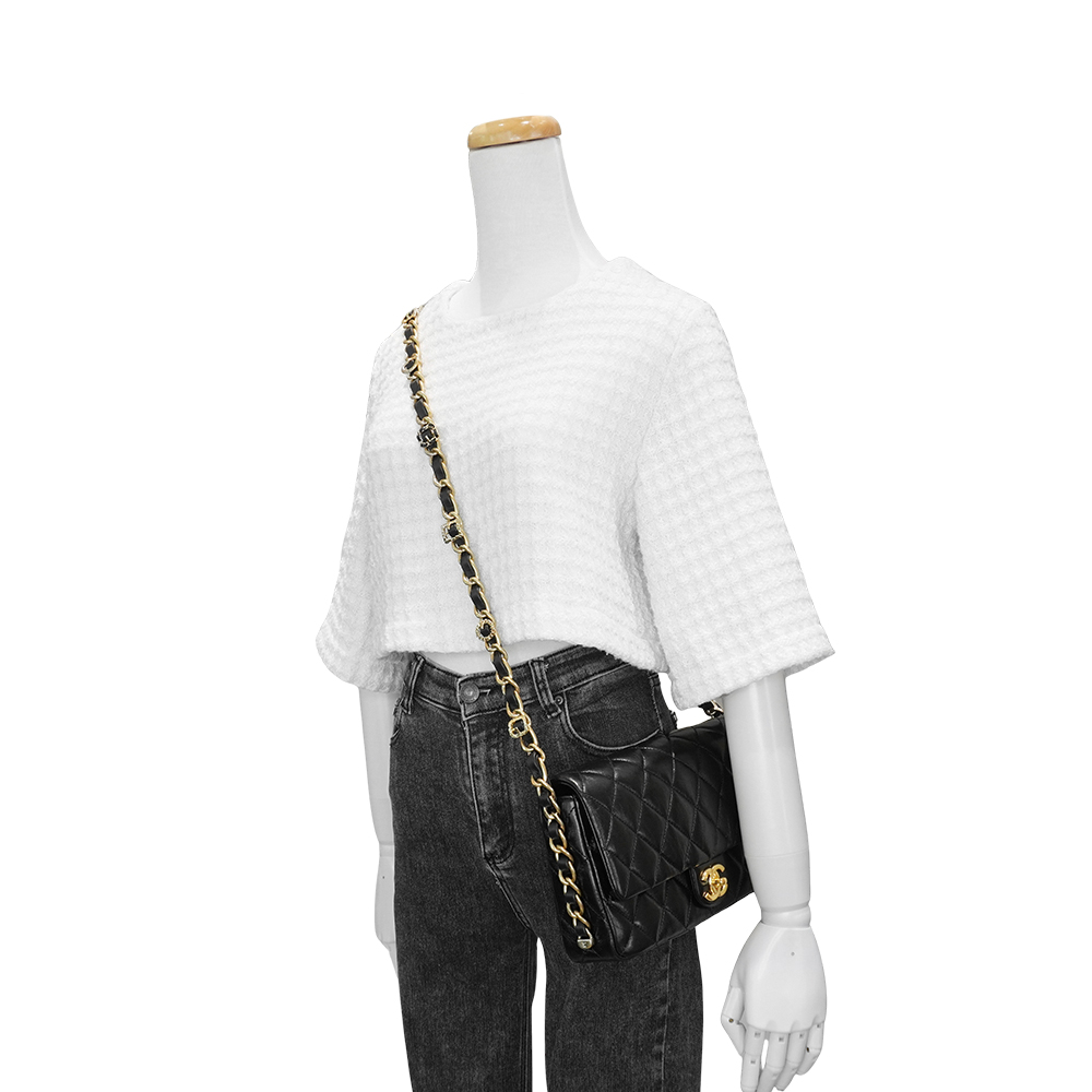 品牌:Chanel型號:AS5010材質:牛皮內裡材質:紡織襯裡尺寸:約 24 x 15 x 5 cm格式:轉釦開合;內拉鍊袋1可否放置A4:否配件:防塵袋.盒子.影證有無底珠 : 無來源:專櫃購入