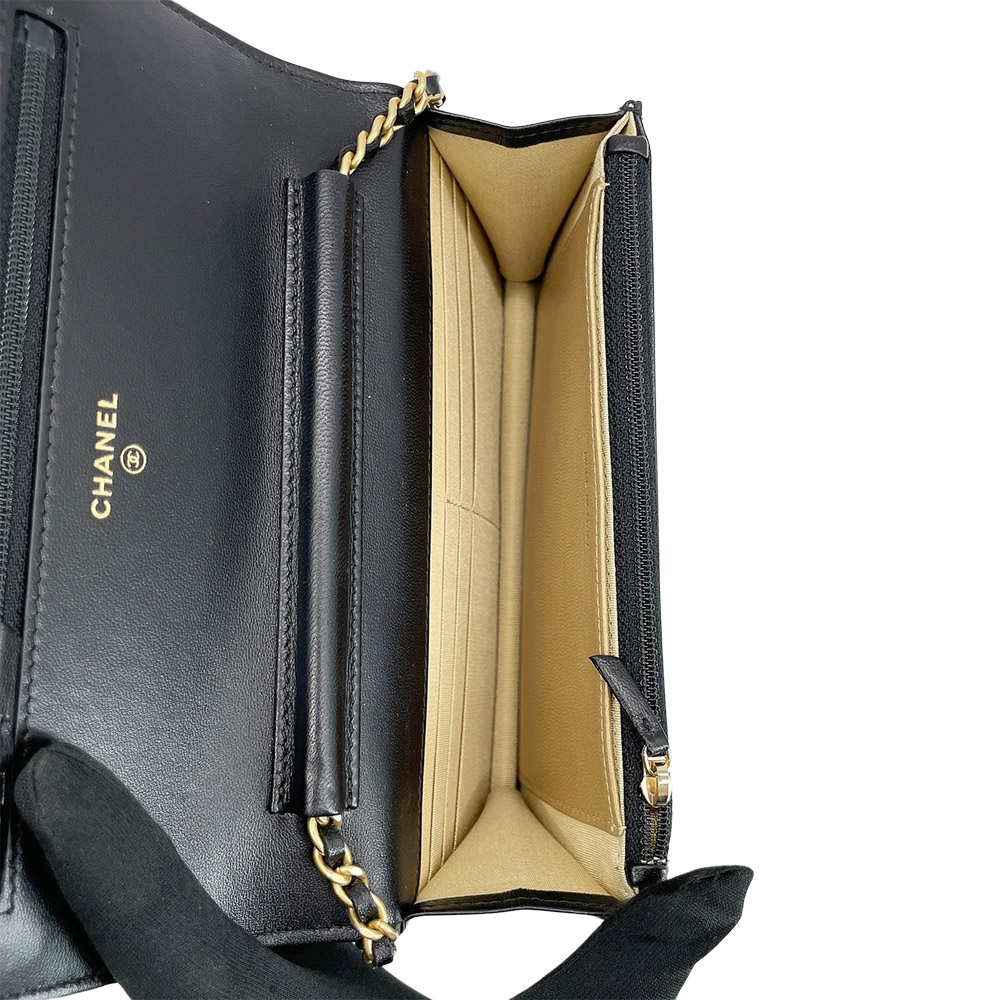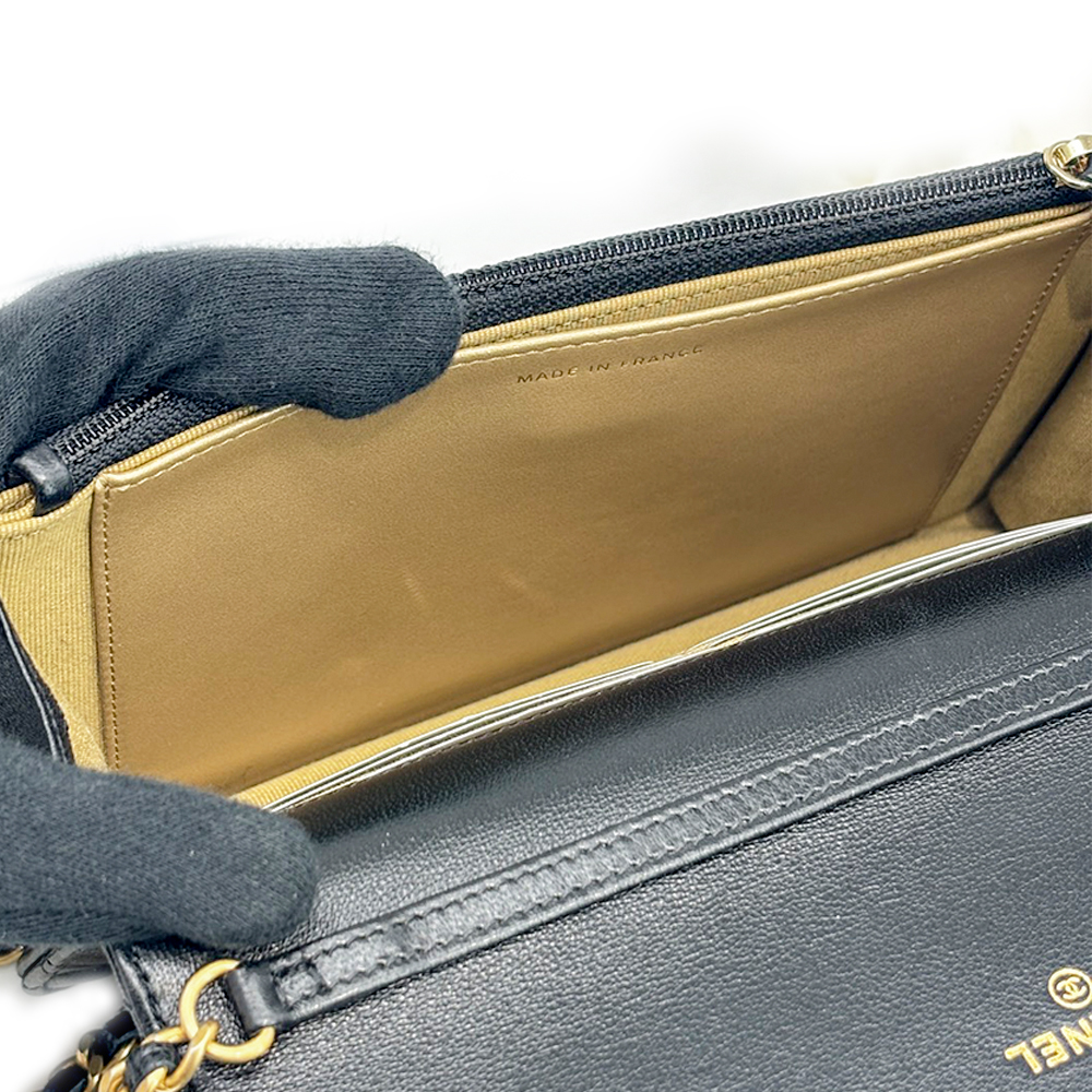 品牌:Chanel 型號:AP1450材質:羊皮內裡材質:皮革.帆布尺寸:約 19 x 12 x 3.5 cm格式:轉扣開口;卡片層6.拉鍊層2.外貼袋1可否放置A4:否配件:防塵袋.盒子.影證備註:展示品,狀況如圖有無底珠 : 無來源:專櫃購入