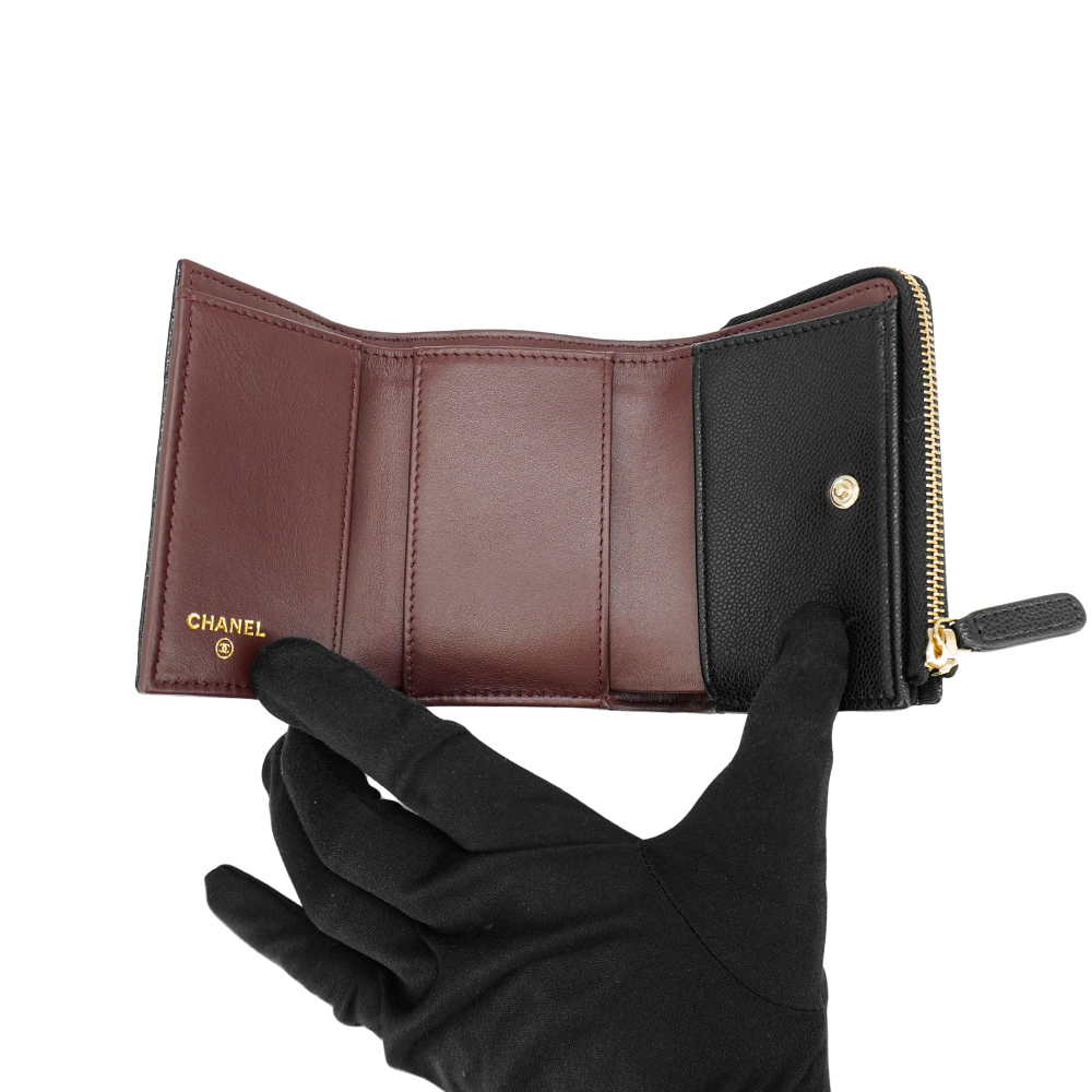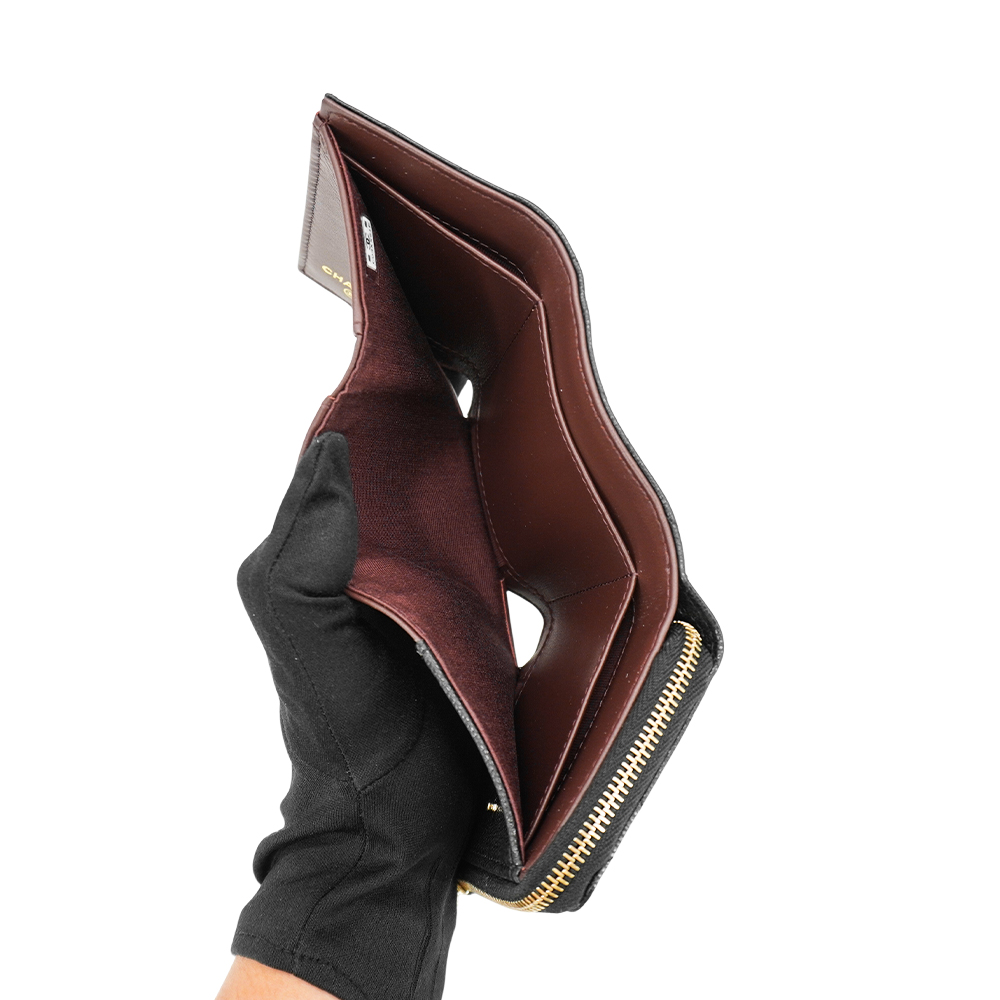品牌:Chanel型號:AP3177材質:牛皮內裡材質:皮革尺寸:約 11 x 8 x 3 cm格式:釦式開合;鈔票層1.卡層6.拉鍊袋1可否放置A4:配件:防塵袋.盒子有無底珠 : 無來源:歐洲真品平行輸入