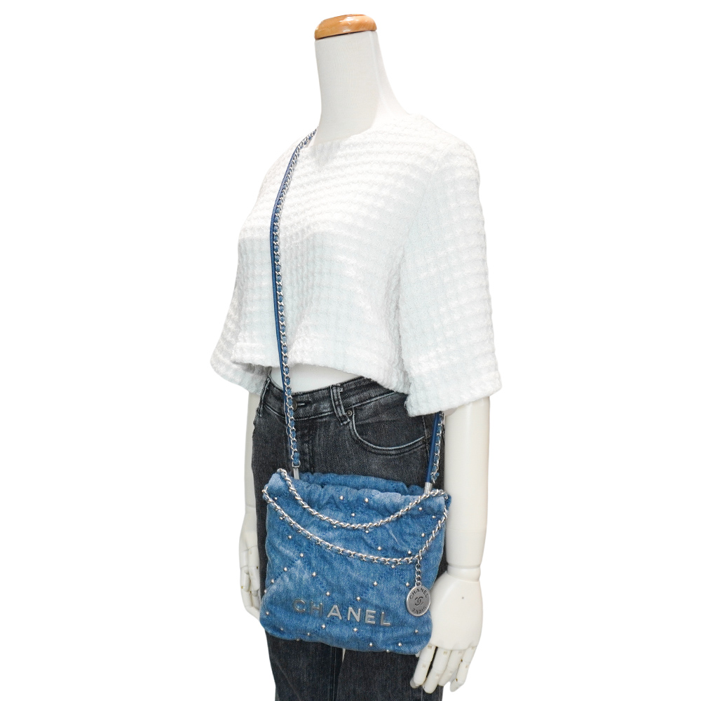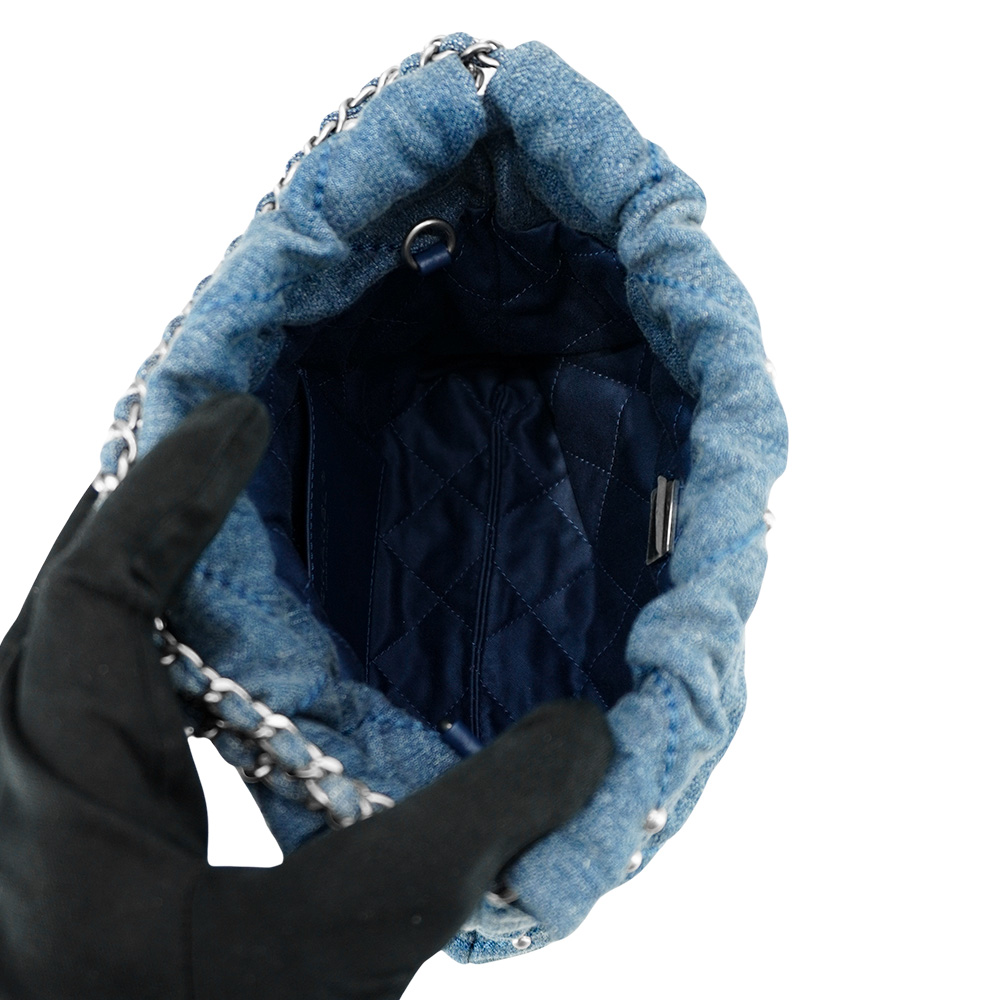 品牌:Chanel型號:AS3980材質:牛仔布內裡材質:紡織襯裡尺寸:約19 x 17 x 7 cm格式:開放開合;內貼袋1可否放置A4:否配件:防塵袋.盒子.影證有無底珠 : 無來源:專櫃購入