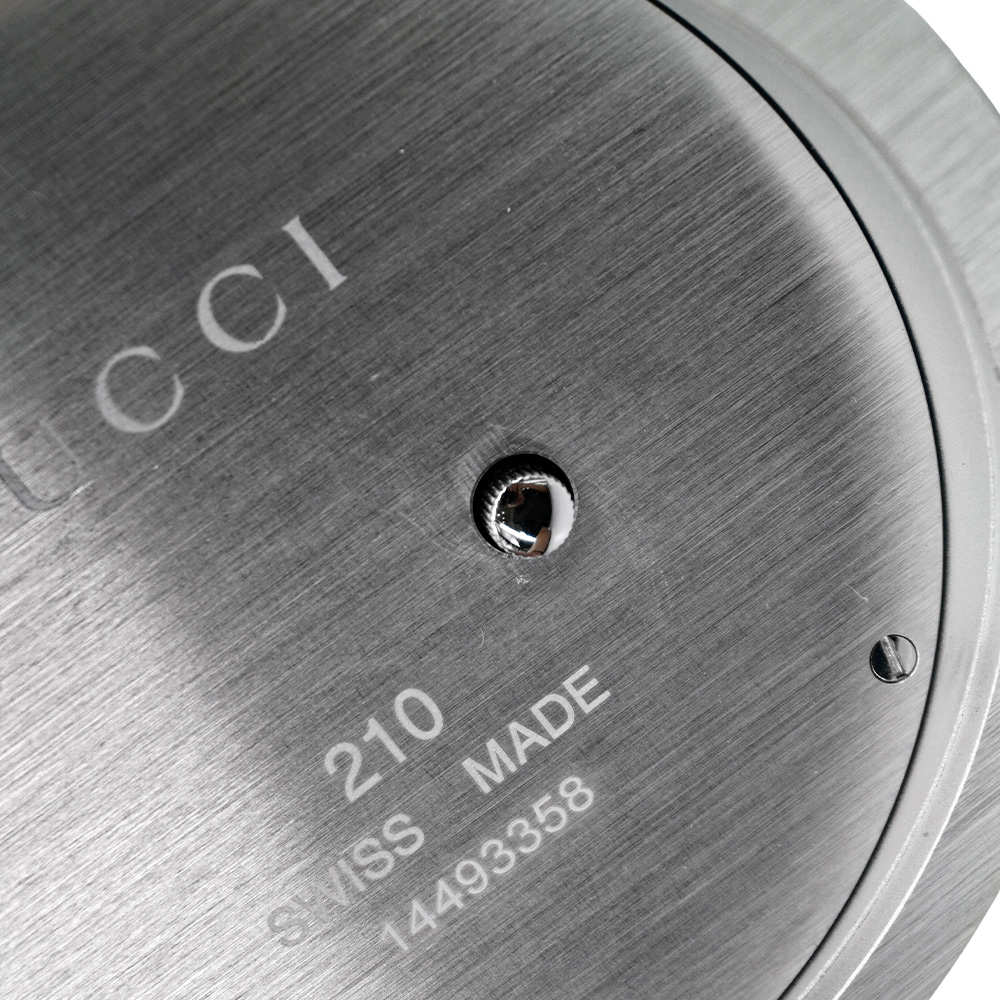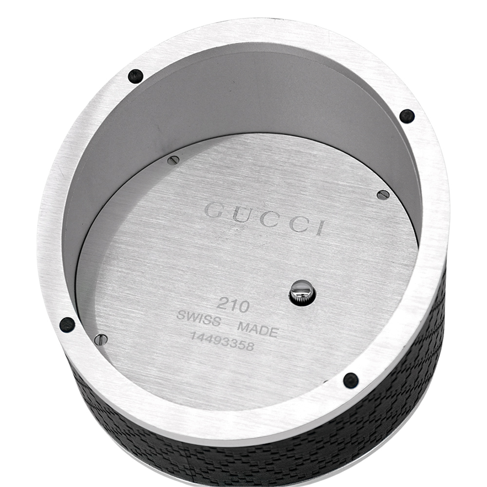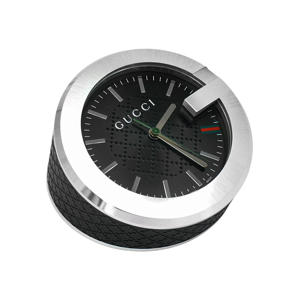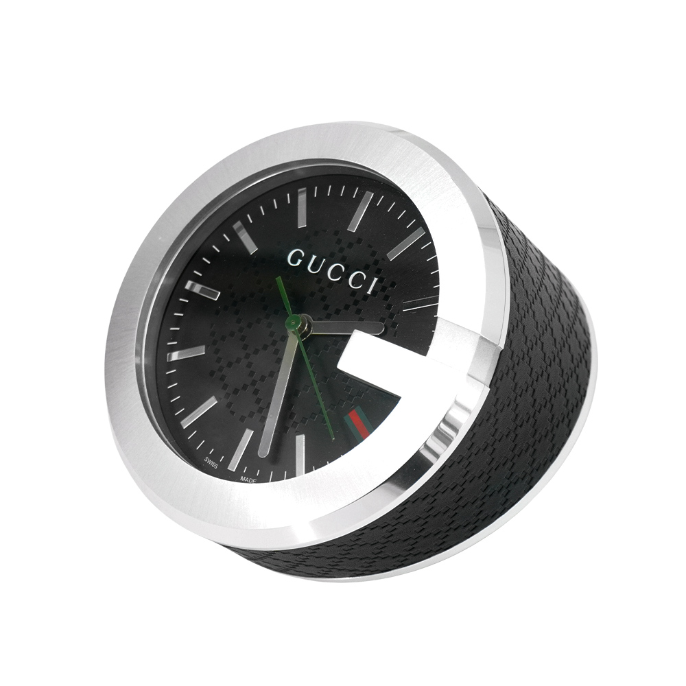 品牌:Gucci材質:壓紋皮革/石英/強化玻璃尺寸:錶面約 10 cm/底座 低 3.5 cm.高 6.8 cm配件:無配件備註:展示品,狀況如圖來源:歐洲真品平行輸入