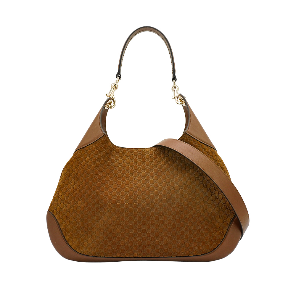 品牌:Gucci型號:834981材質:绒面皮革內裡材質:皮革尺寸:約 42 x 36 x 2 cm格式:磁吸開合;內拉鍊袋1可否放置A4:否配件:防塵袋.影證備註:展示品,狀況如圖有無底珠 : 無來源:專櫃購入