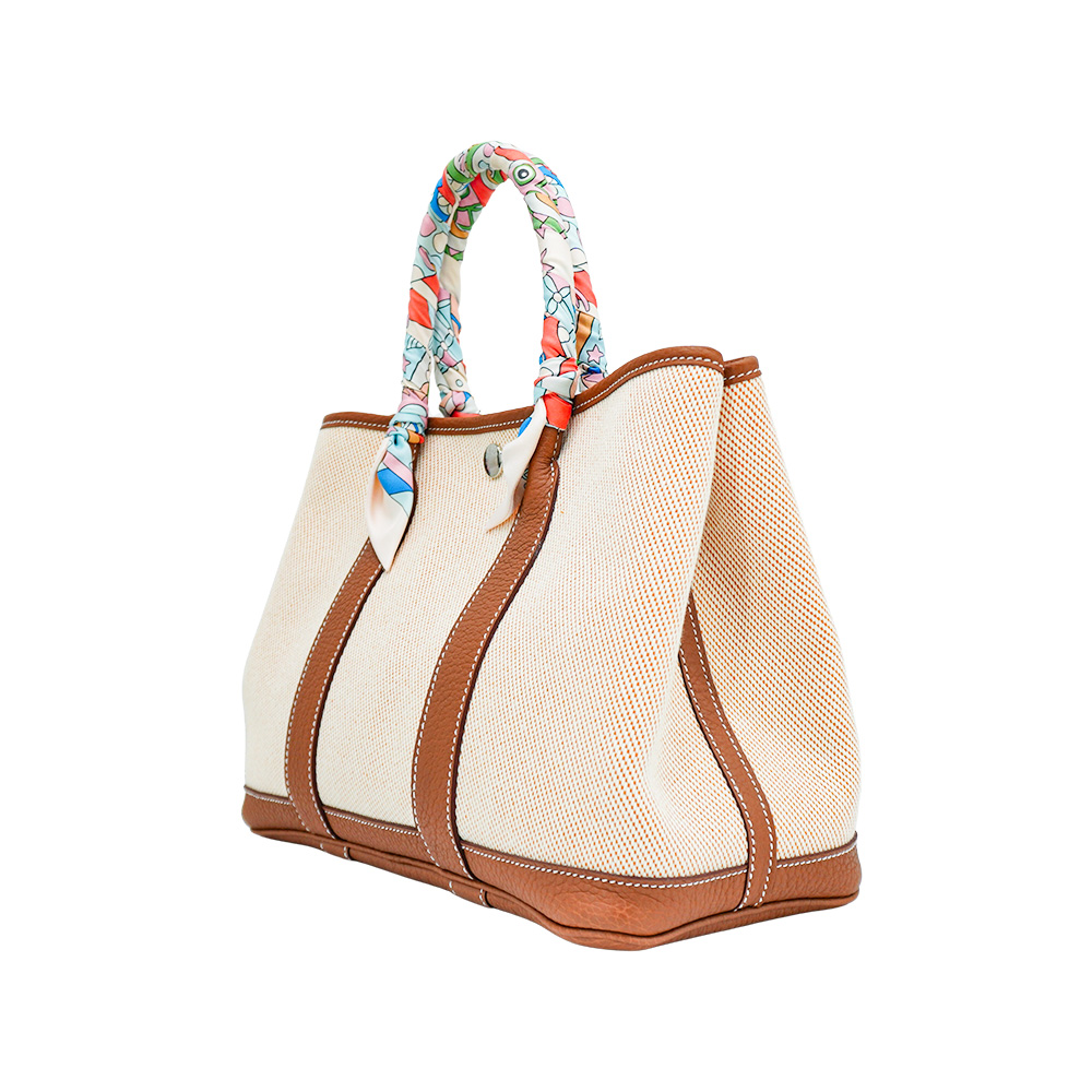 品牌:Hermes材質:帆布/牛皮內裡材質:帆布尺寸:約 30 x 20 x 13 cm格式:扣式開口;無夾層可否放置A4:否配件:防塵袋.盒.Twilly 一對有無底珠 : 無來源:歐洲真品平行輸入