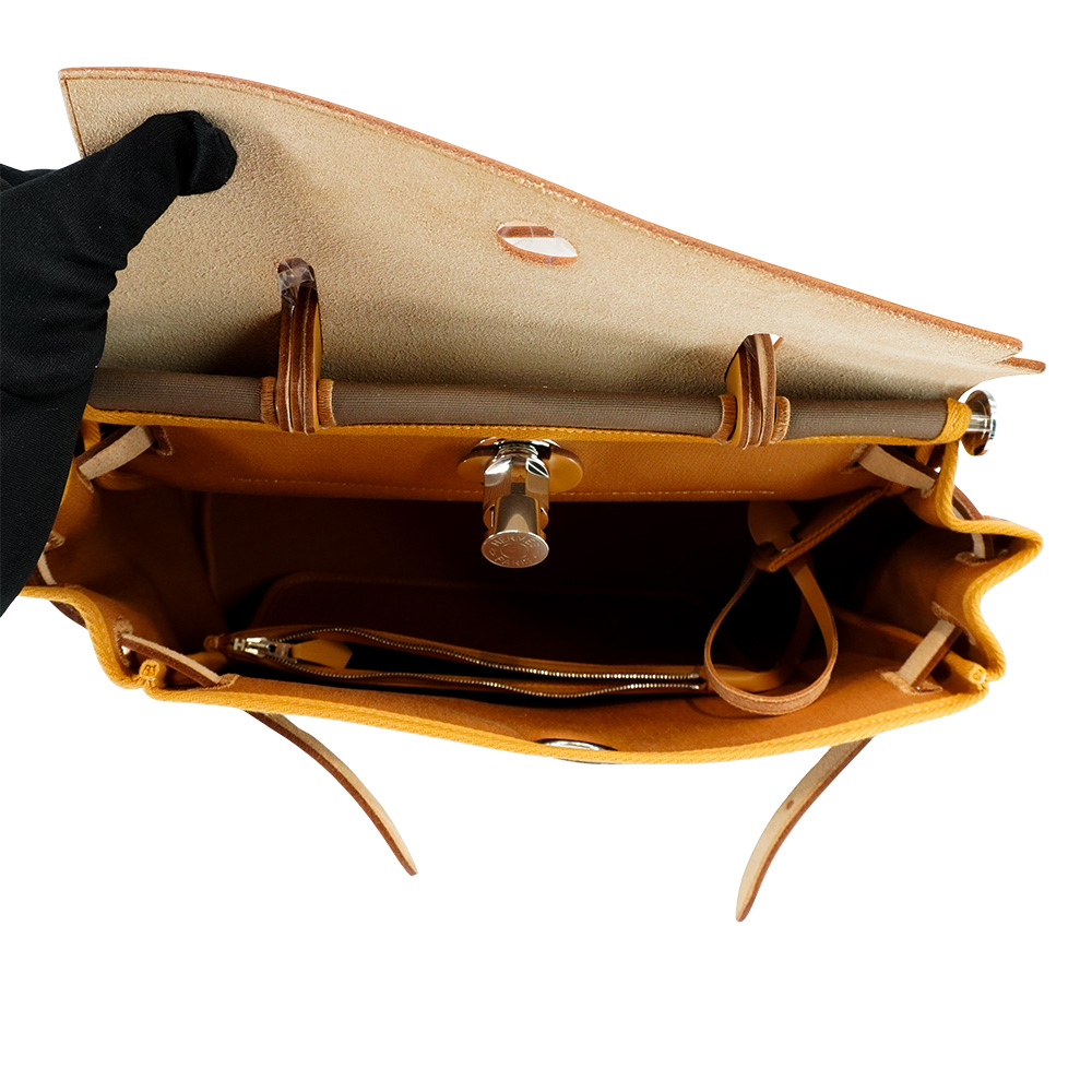 品牌:Hermes 材質:帆布/牛皮內裡材質:帆布尺寸:約 31 x 25 x 10 cm格式:穿式開合;外拉鍊袋1可否放置A4:否配件:防塵袋2.小包1.鎖匙組有無底珠 : 無來源:歐洲真品平行輸入