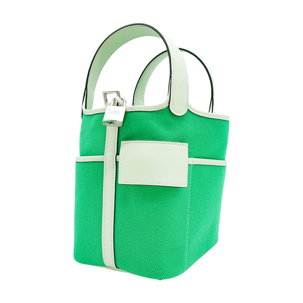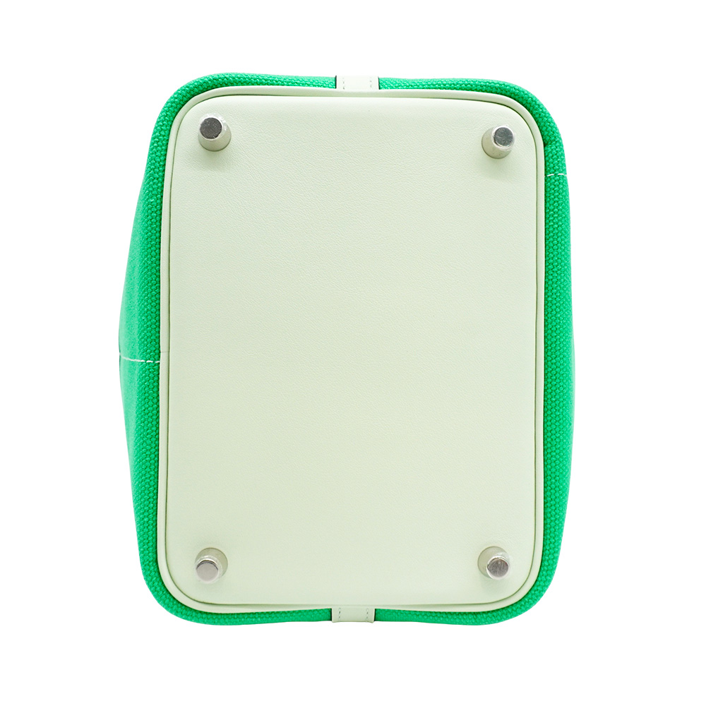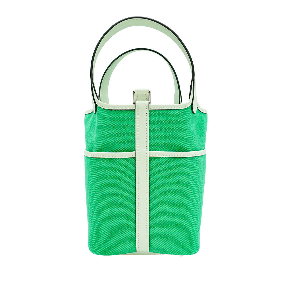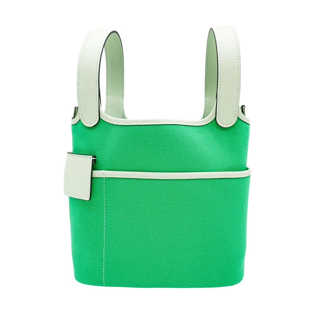 品牌:Hermes型號:H083189CKAQ材質:牛皮/帆布內裡材質:帆布尺寸:約 18 x 18.5 x 13 cm格式:穿扣開合;外貼袋4配件:防塵袋.盒子.影證.鎖匙組有無底珠 : 有可否放置A4:否來源:專櫃購入