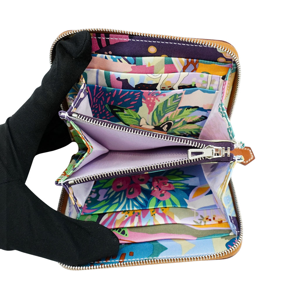 品牌:Hermes材質:Epsom牛皮內裡材質:絲巾尺寸:約 11 x 9.5 x 2 cm格式:拉鍊開口;卡層6 零錢袋1配件:盒子.影鄭來源:歐洲真品平行輸入
