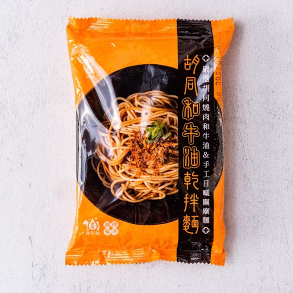 嚴選胡同燒肉A5和牛油,享受萬中選一的細緻和牛油香與美味;純手工製作日曬關廟麵,無添加防腐劑、無人工色素、無麵質改良劑。銷魂的牛油香氣四溢,每一口麵都是滿滿的胡同味,也是幸福的滋味。 「胡同和牛油乾拌麵」,嚴選細緻和牛油,融入純釀醬油,搭配Q彈手工日曬關廟麵,並拌入隨附的蔥酥及椒麻辣粉,不油不膩,香氣再提升!不需要有高深的廚藝,僅需約5分鐘的料理時間,即可享用一碗細緻和牛油乾拌麵。