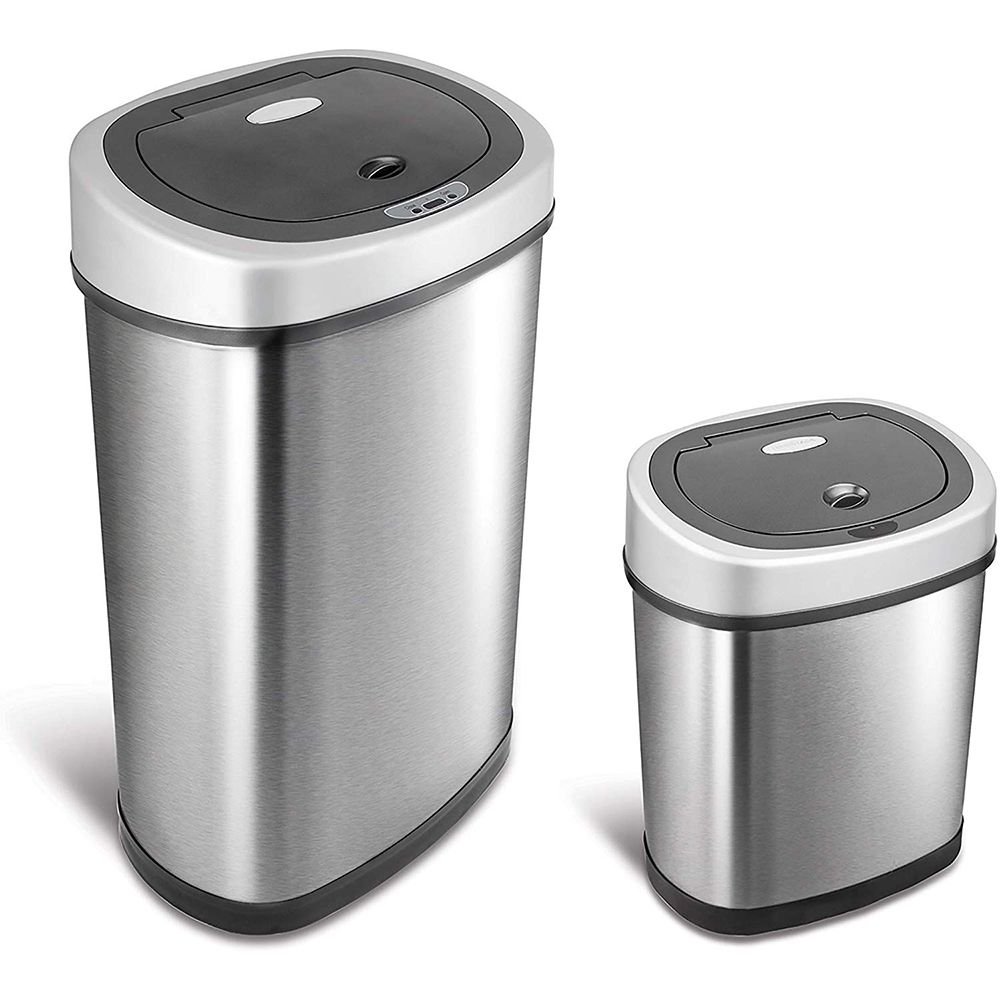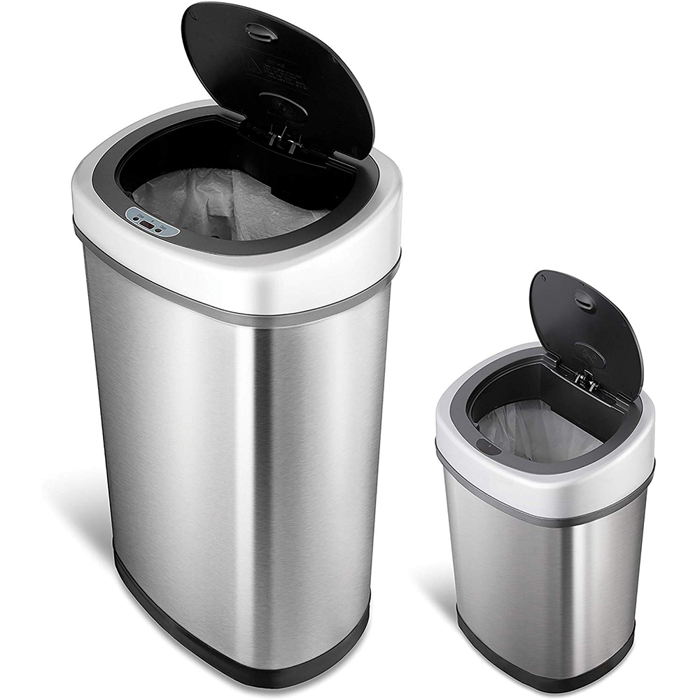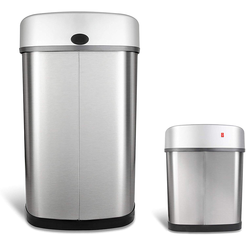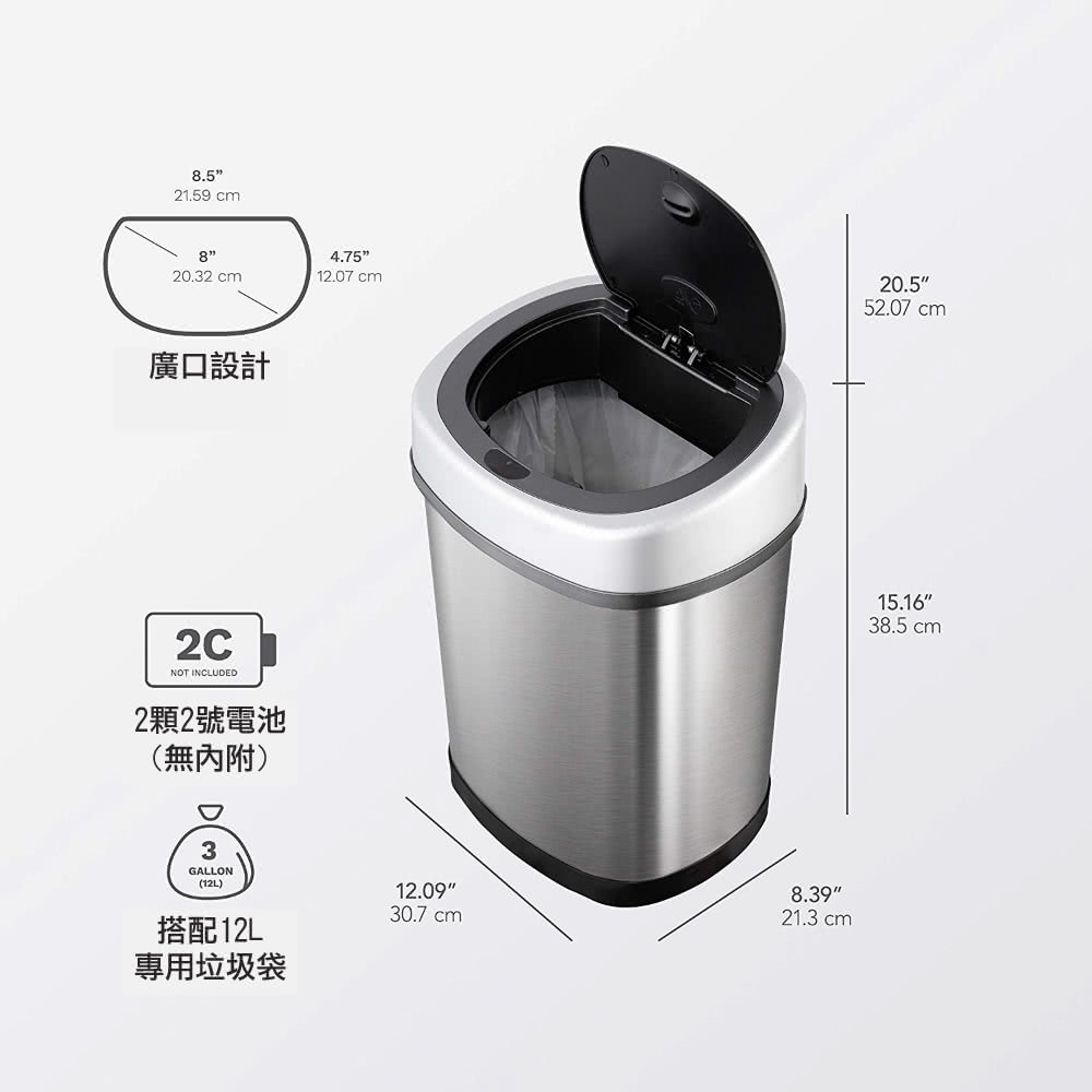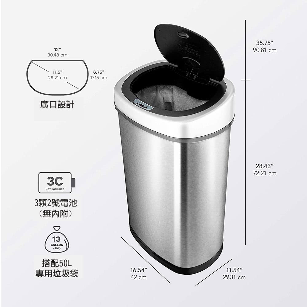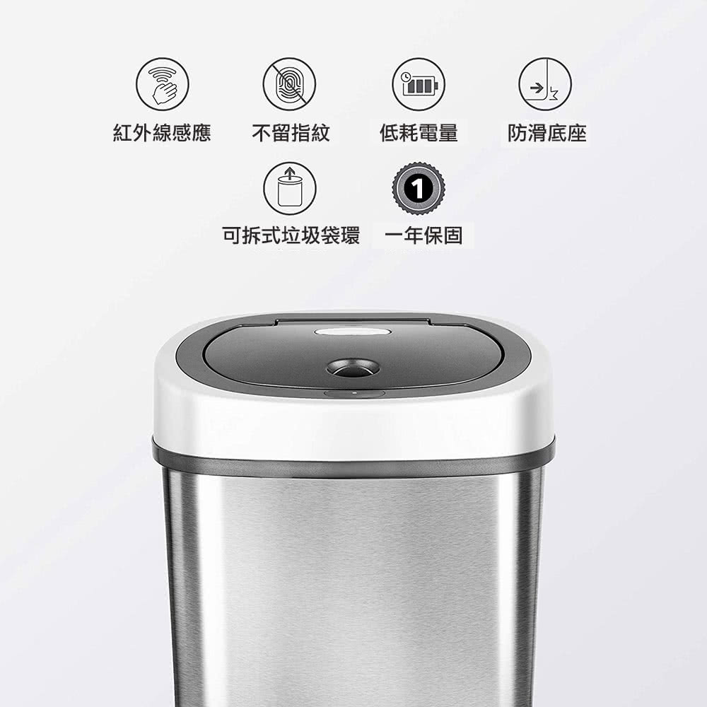 美國NINESTARS 現代極簡不銹鋼感應式垃圾桶50L+12L