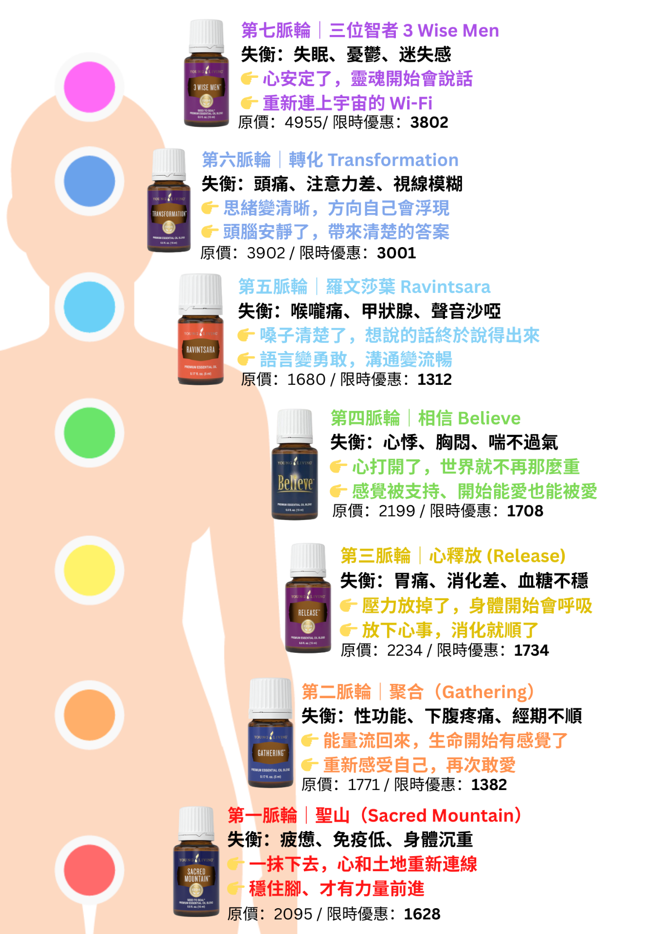 🔹 七支精油 × 對應七脈輪提振身心靈能量