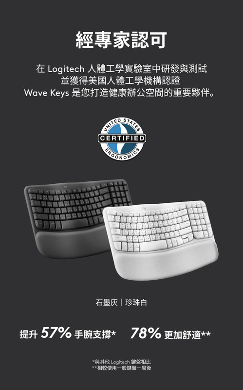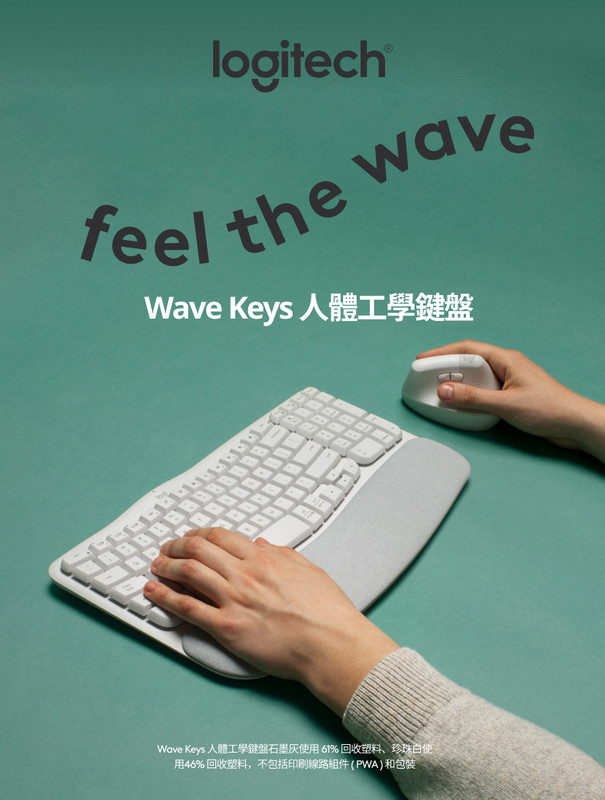 Wave Keys 人體工學鍵盤(黑/白/粉)