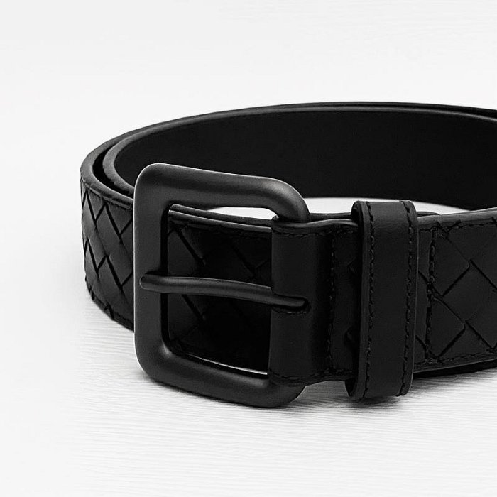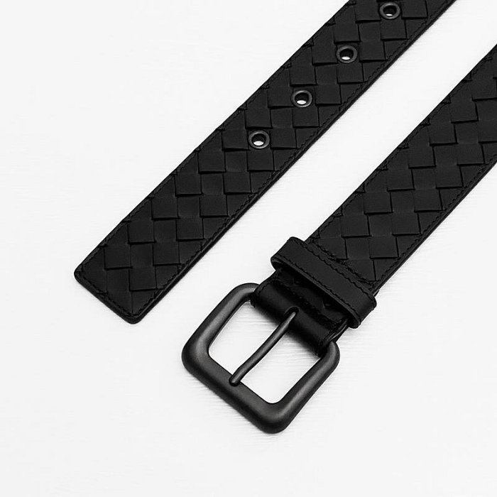 美國百分百【全新真品】BOTTEGA VENETA 真皮編織 皮帶 牛皮 歐洲精品 BV 配件 黑色 BD59