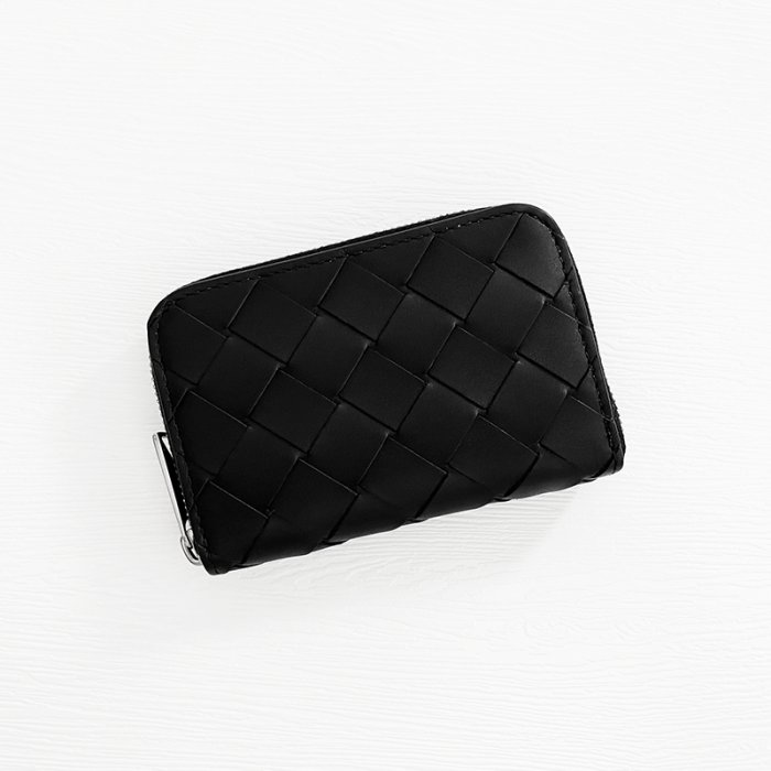 美國百分百【全新真品】BOTTEGA VENETA 真皮編織 零錢包 BV 錢包 配件 皮革 歐洲精品 黑色 CK05