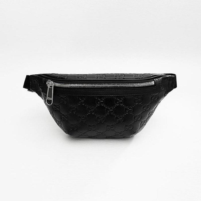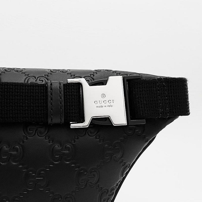 美國百分百【全新真品】GUCCI 皮包 腰包 胸包 斜背包 皮革 男包 歐洲精品 壓紋印花 黑色 CU16