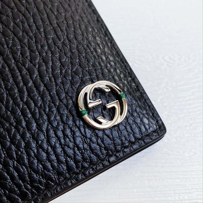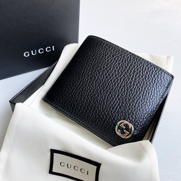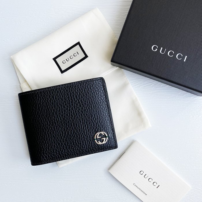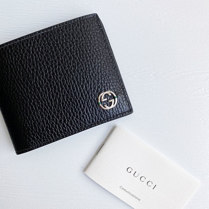 美國百分百【全新真品】Gucci 皮夾 logo 真皮 錢包 六卡 短夾 義大利製 專櫃精品 黑色 CC43