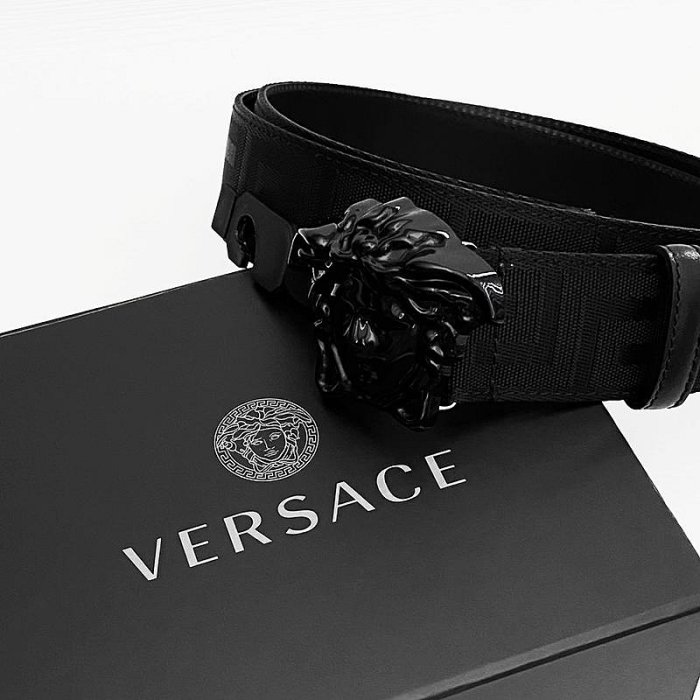 - 織布腰帶,飾有提花Greca圖案,配有La Medusa扣環。