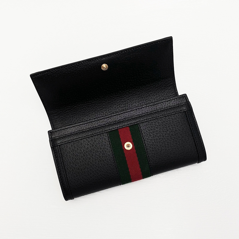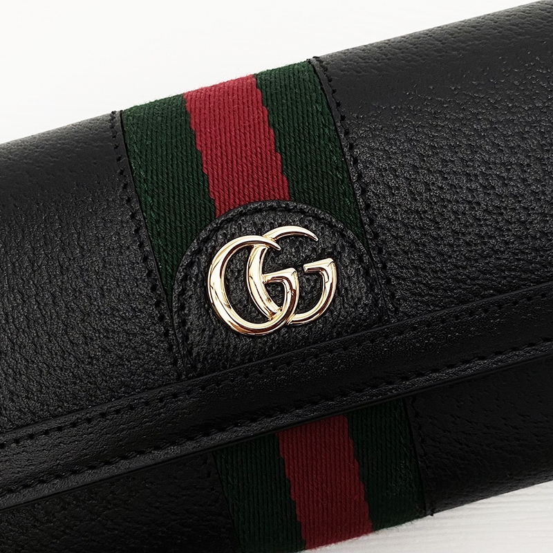 Gucci 皮夾 長夾 配件 錢包 logo印花 綠紅織帶 黑色 CW55