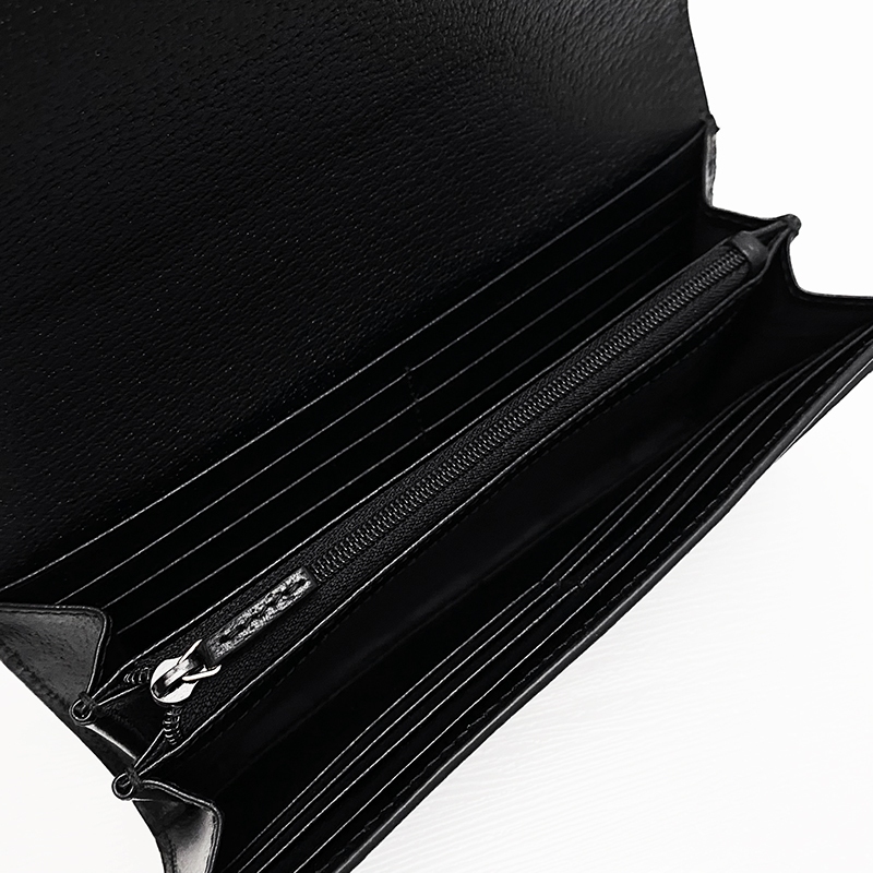 尺寸:長*寬*高=19*3.5*10.2 公分。內含12個卡片層、5個夾層、1個拉鍊層。附原廠禮盒包裝及防塵袋。