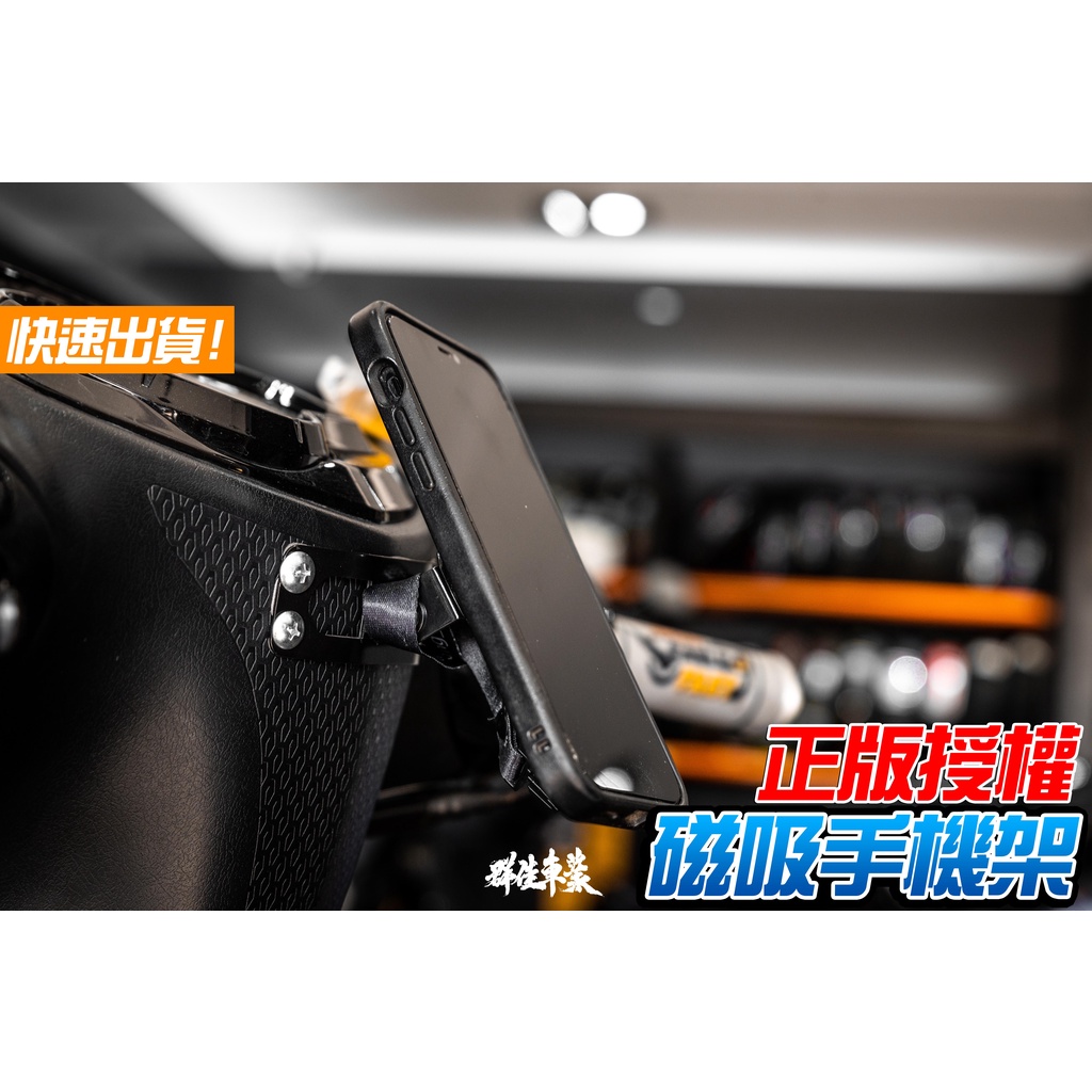 【群佳機車精品】 ■正版授權-磁吸手機架 ■商品說明: 此磁吸手機架為正版授權 非一般工廠生產 專利申請,不用擔心商品來路不明,安心使用 本體為白鐵材質噴黑,預防生鏽造成不美觀 內附: 手機架*1 手機背板磁鐵*1 安裝前請先將欲安裝位置清潔乾淨 並核對位置 將手機架背膠撕除後,黏貼於安裝位置上 並使用四顆鐵板牙螺絲鎖附於四個鎖點上 再將磁鐵背膠撕除黏貼於手機殼後方即可 ※注意: 手機殼盡量不要使用太軟的材質,拆下手機時 切勿直接用力拔,磁鐵吸力太強可能造成手機殼受損 請以上下滑動方式抽下手機更安全~