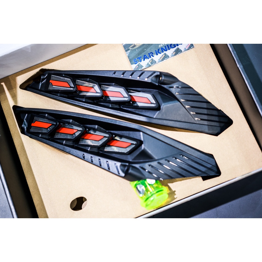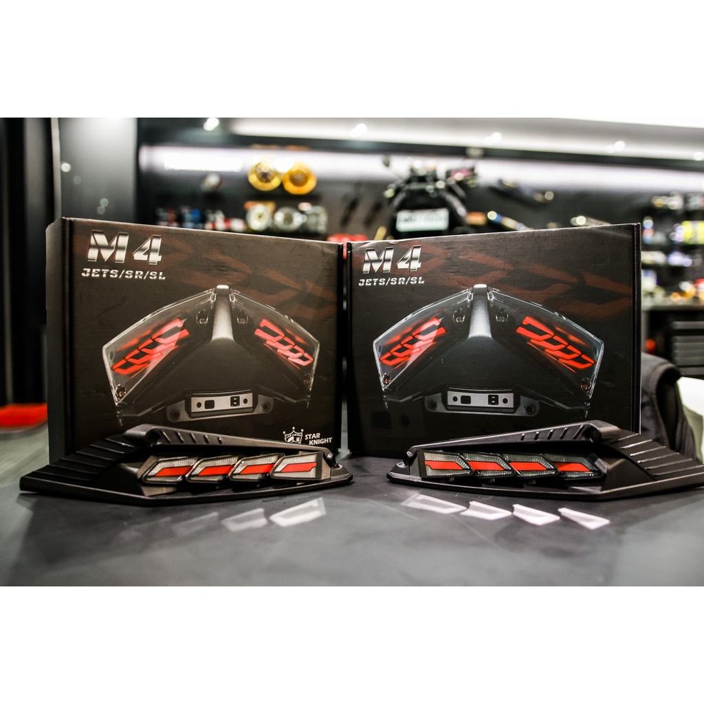 星爵 M4 龍麟尾燈 JETS/SR/SL 尾燈 ▶ 商品規格 ✔ 適用車款 : JETS/SR/SL專用 ✔ 具備驗車、閃爍、煞車、序列、開機模式 ✔ 設計概念來自進口車M系龍麟尾燈設計 ✔ MIT台灣製造開模設計 ✔ 尾燈內部細節則採八片式龍鱗片遞疊 ✔ 尾燈直上免修改 ✔ 採大廠汽車專用龍麟片製作,高品質、高規格 ✔ LED降低耗電、提高亮度,增加日夜間辨識度 ▶ 作動方式 驗車模式 ➊小燈開啟後,15秒內。 ➋煞車按著,5秒放開。 ➌接續快入按6下煞車。 ➍即進入『驗車模式』;切換回來亦同。 方向燈 ➊閃爍-四片龍麟同步閃爍。 ➋序列-從中間向外,依順序亮起,一同熄滅。 ➌重置-切換成驗車模式,若左右方向燈有一邊造成不同步,需先切到重置鍵,再切置想要的功能,並重新操作調整驗車模式➊→➋→➌→➍ 極具品味的完美藝術品〃JET專用M4龍麟尾燈〃, 從內、從外、從心 、締造非凡;絕美驚艷。 尾燈採專用歐規進口車龍鱗片啟發設計, 高規、高品質製程,質感、亮度完全提升! 尾燈內部細節則採八片式龍鱗片遞疊, 打造出層層擴展的效果,將尾燈發揮的淋漓尽致; 代光學透鏡,每片龍麟皆發揮4顆高功率LED,比小燈亮甚亮3倍,產品更具備基本閃爍式模式外,更有煞車模式、序列式模式、驗車模式、開機模式,每一項模式的開啟皆絕美驚艷, 2022年新世代創新尾燈,品味出眾尊爵不凡。 建議可搭配星爵高清淺黑尾燈殼,如其它款式尾燈殼可能因色澤過深無法將商品完整展示出來,方向燈採用光學導光,過深易影響白天效果。 星爵高清尾燈殼經全透明無痕設計,安裝後可讓導光條造型清晰可見,不再因為痕格導致模糊像馬賽克一樣, 材料部分使用與原廠相同的PC塑料,極具透光性,耐熱防止太陽曬變形退色,表面也與一般燈殼不同!