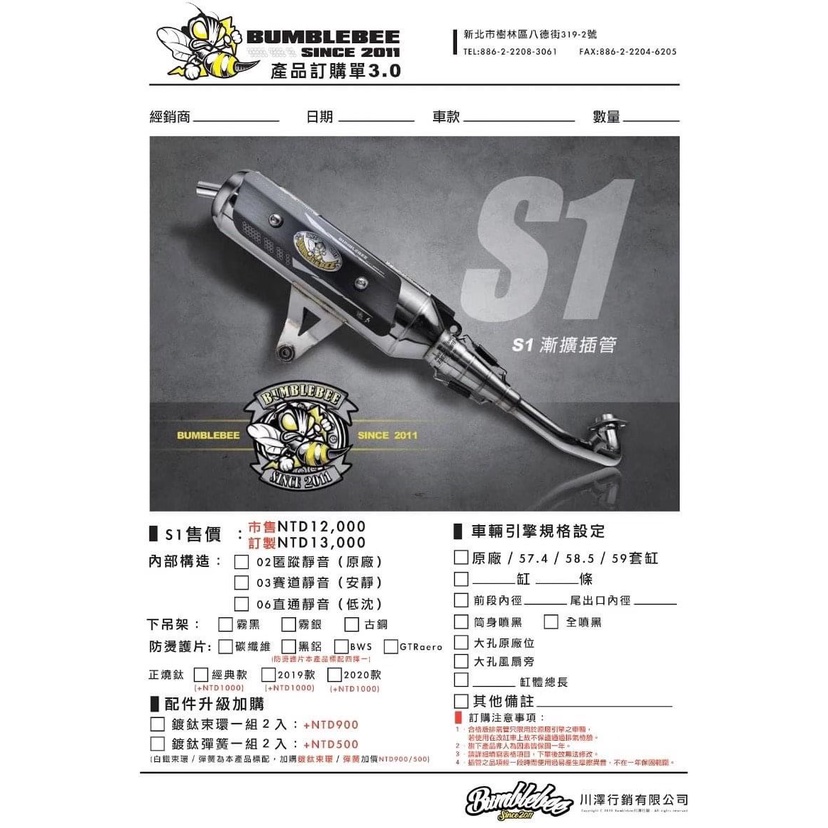 【黃蜂Bumblebee】S1 白鐵側繞排氣管 漸擴插管 川澤行銷 勁戰/BWSX/BWSR/GTR 一般管