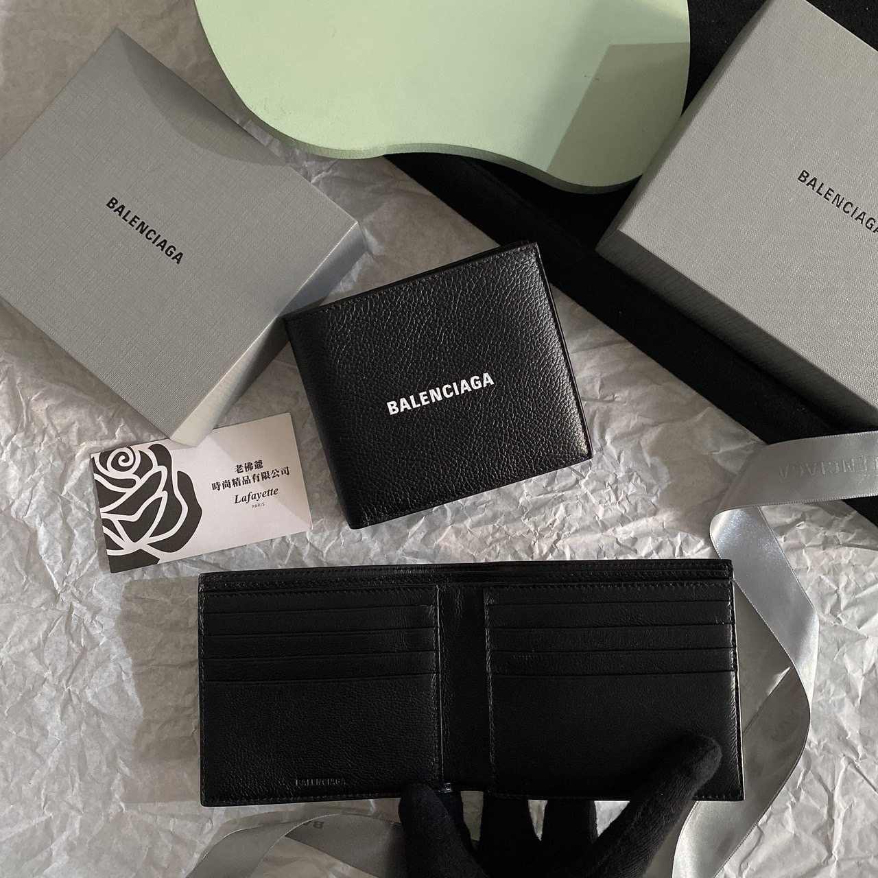 BALENCIAGA 經典牛皮八卡男短夾