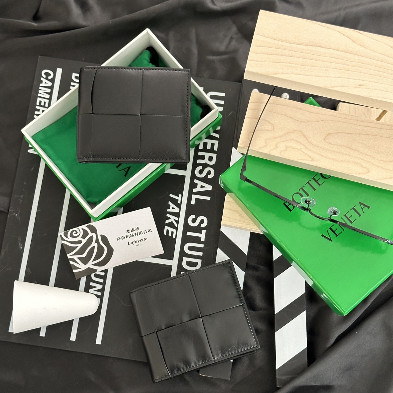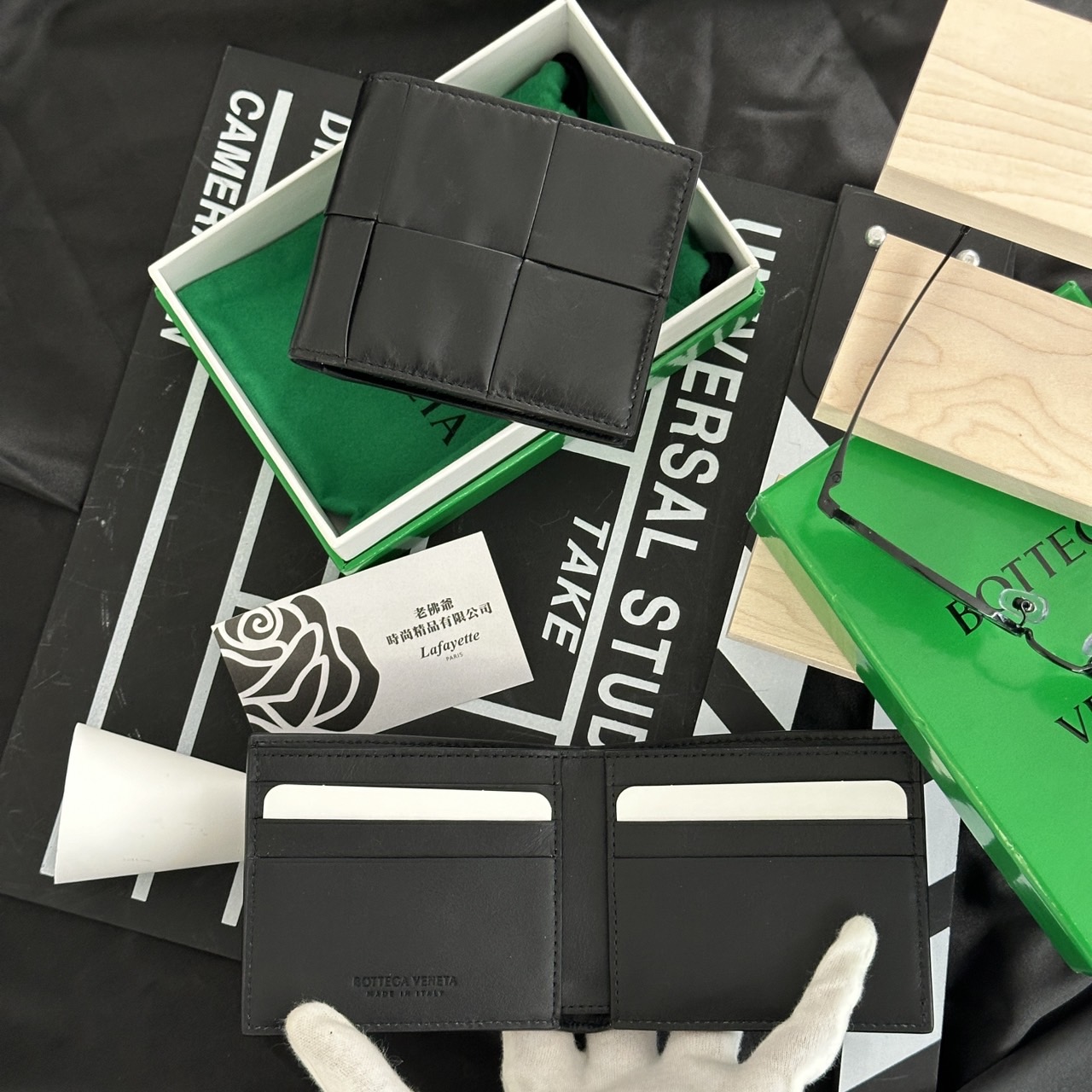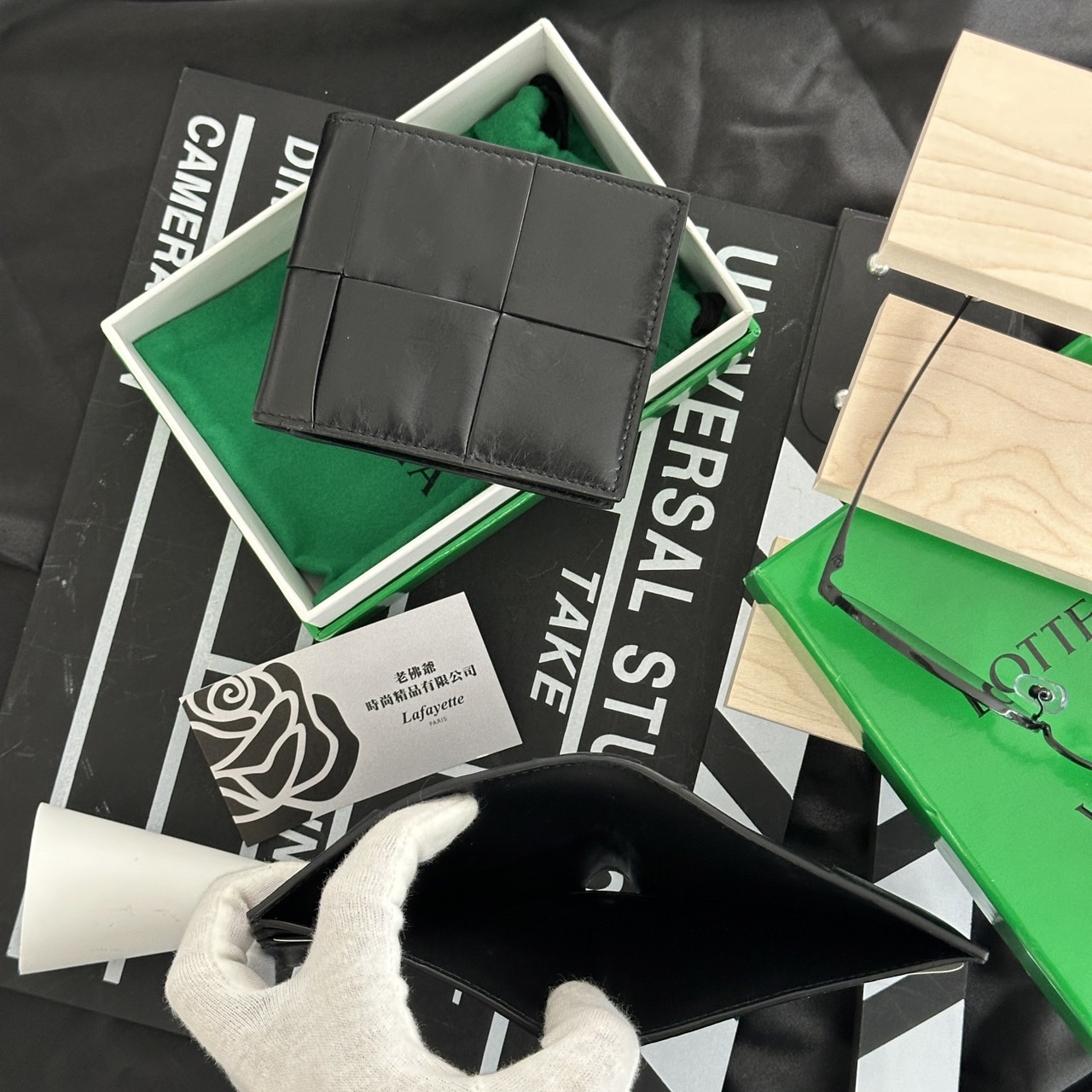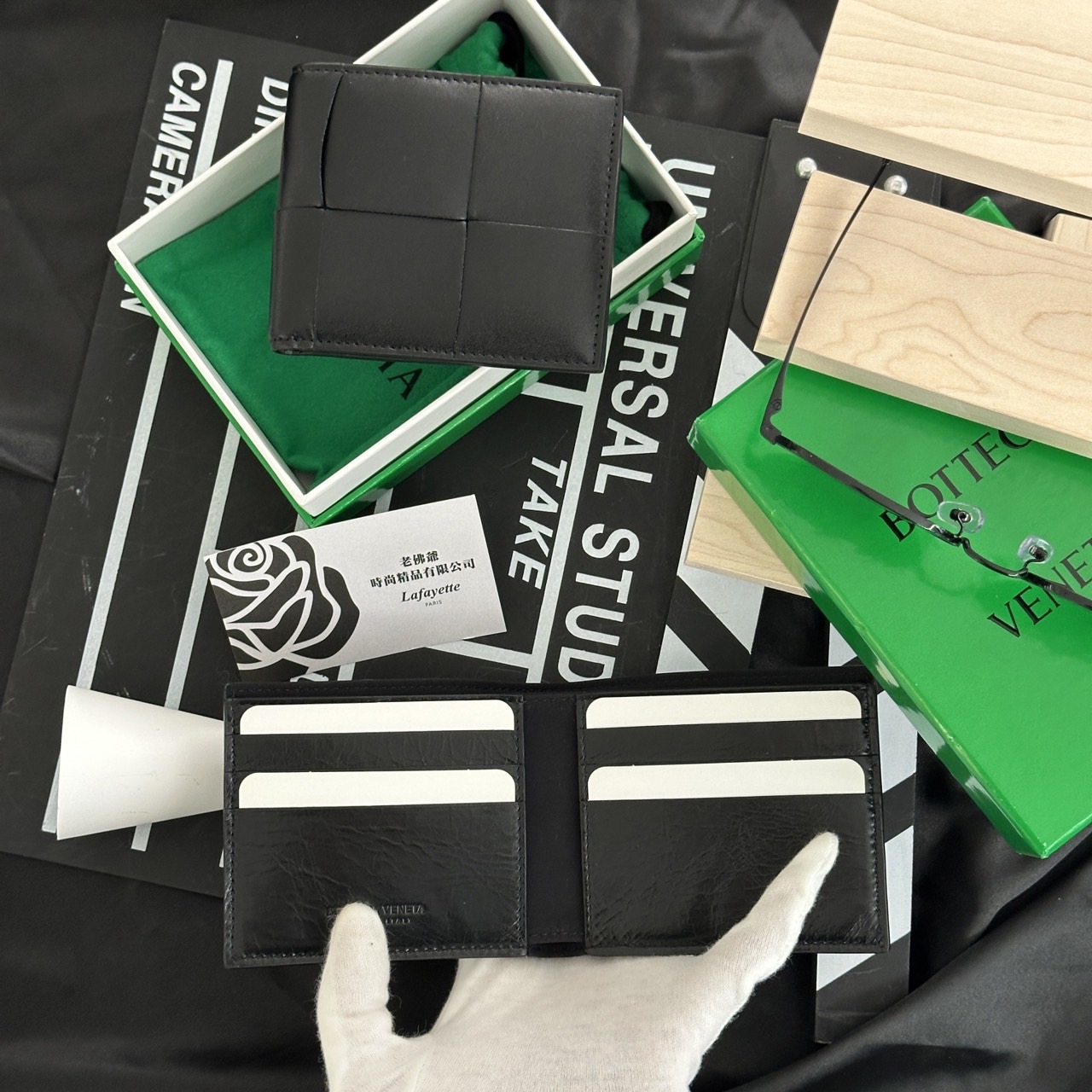 BOTTEGA VENETA 油蠟皮大格編織 六卡男短夾