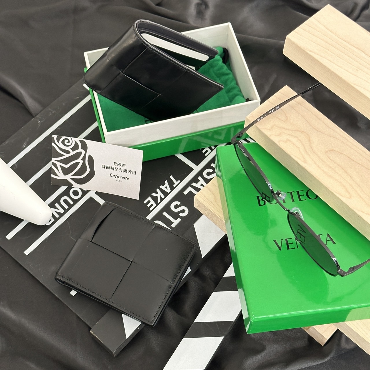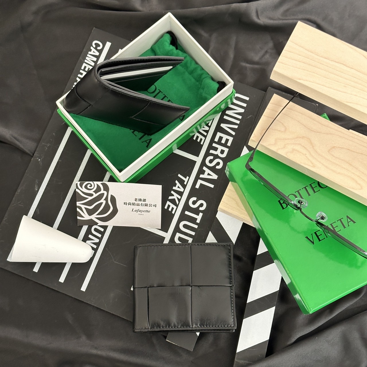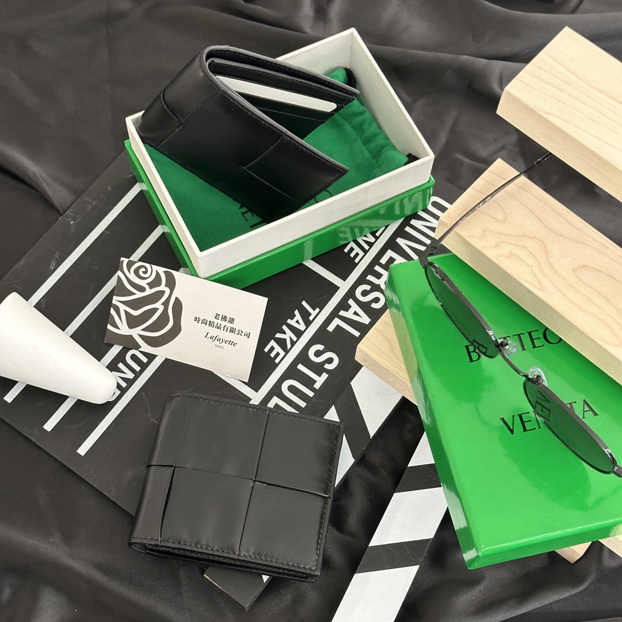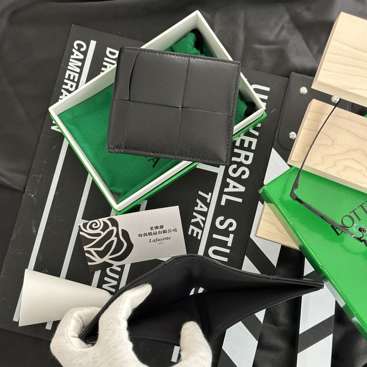 BOTTEGA VENETA 油蠟皮大格編織 六卡男短夾