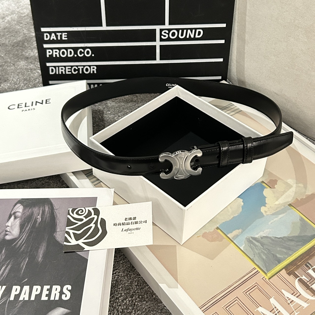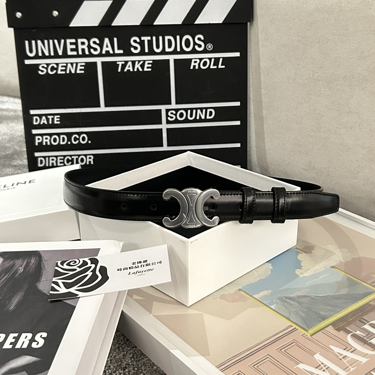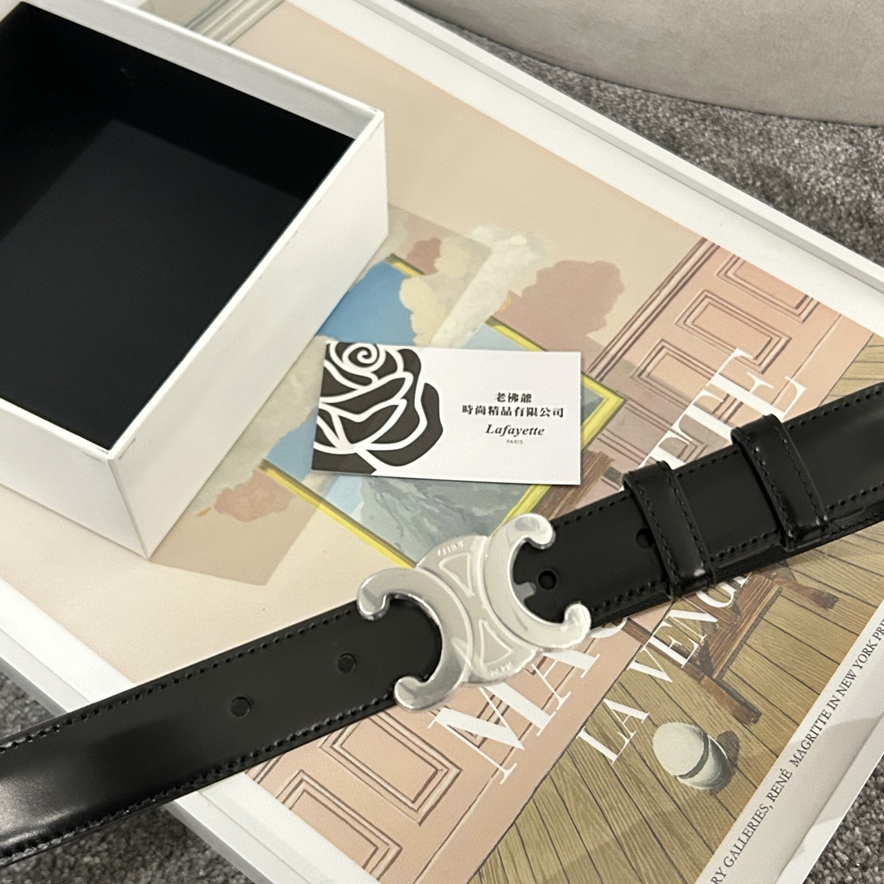 CELINE 凱旋平滑小牛皮2.5CM 銀頭皮帶